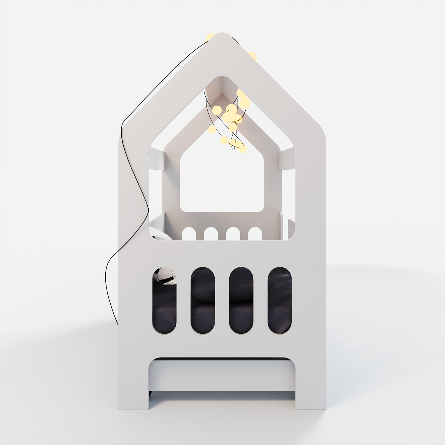 | Особенности | в форме домика, с бортиком, с ящиком для белья, усиленная конструкция |