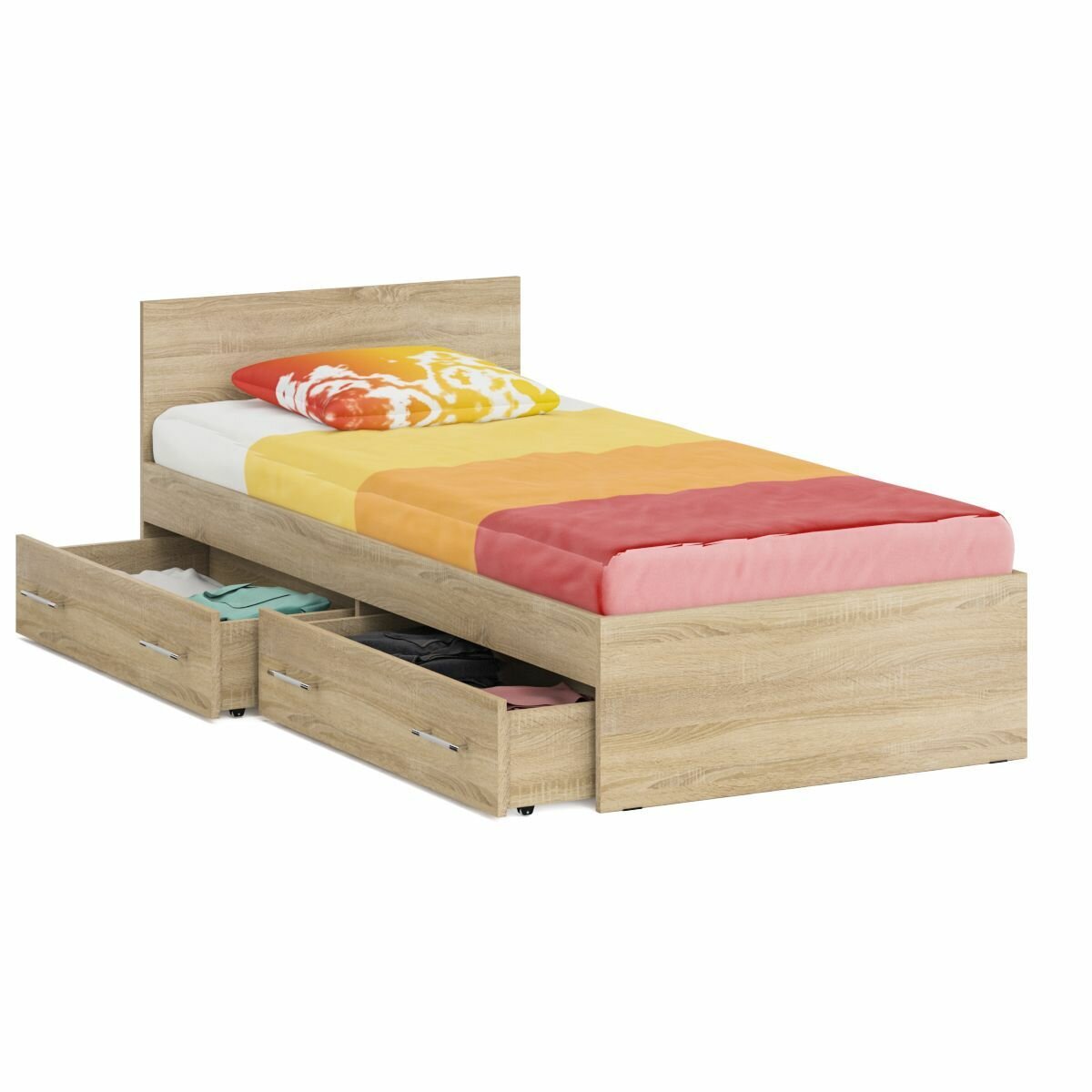 Кровать с ящиками СВК "Стандарт" 90х200см, цвет Дуб Сонома, с жестким основанием, без матраса