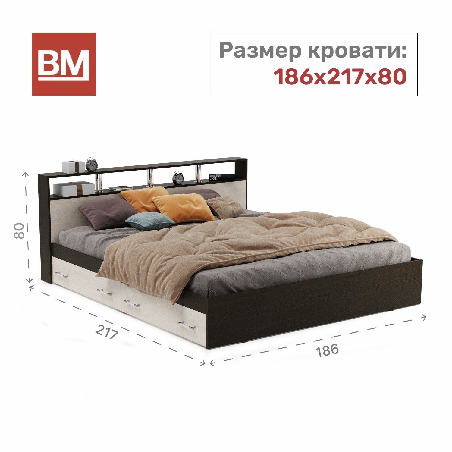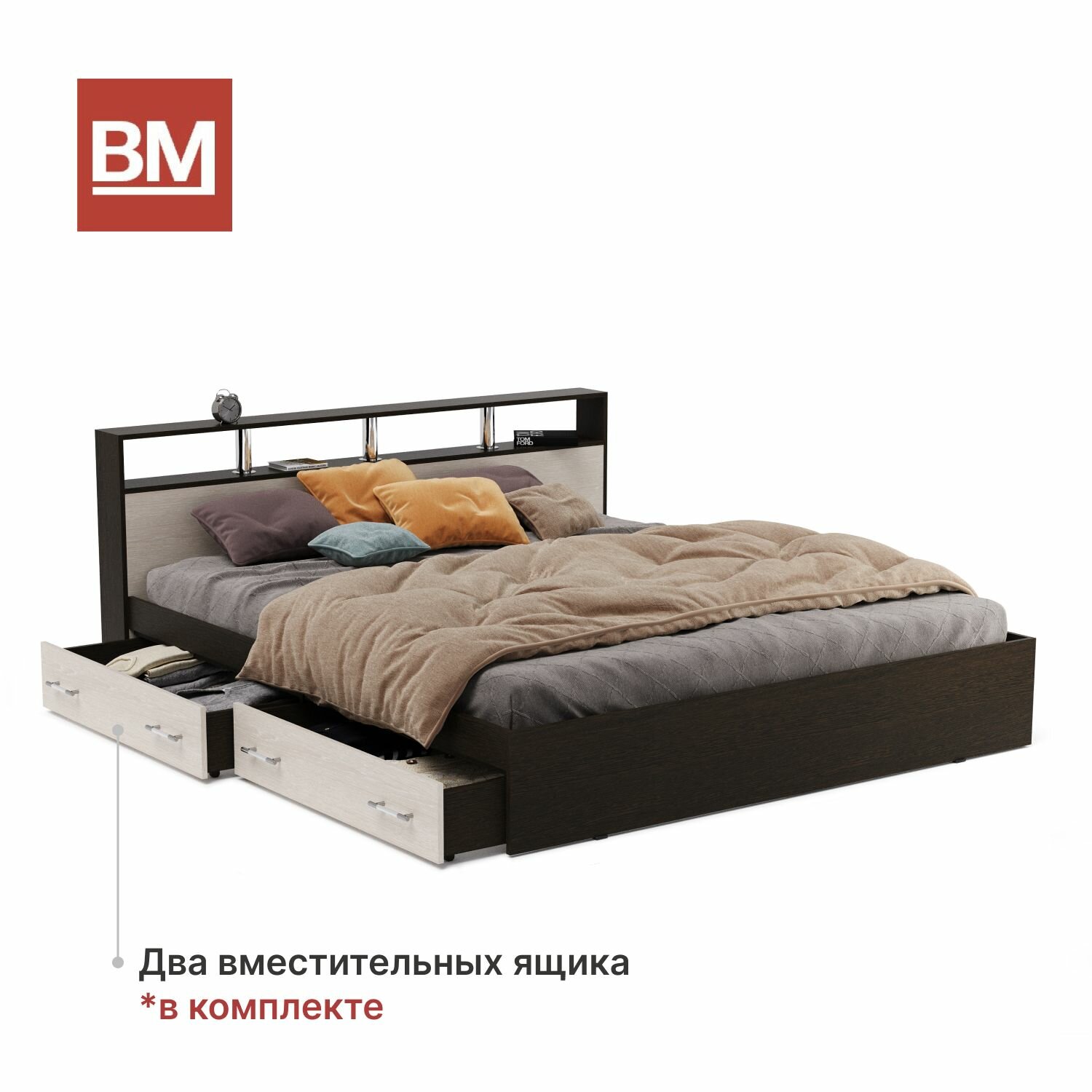 Кровать двуспальная арина 180х200, Венге/Дуб молочный с ящиками интересное:
