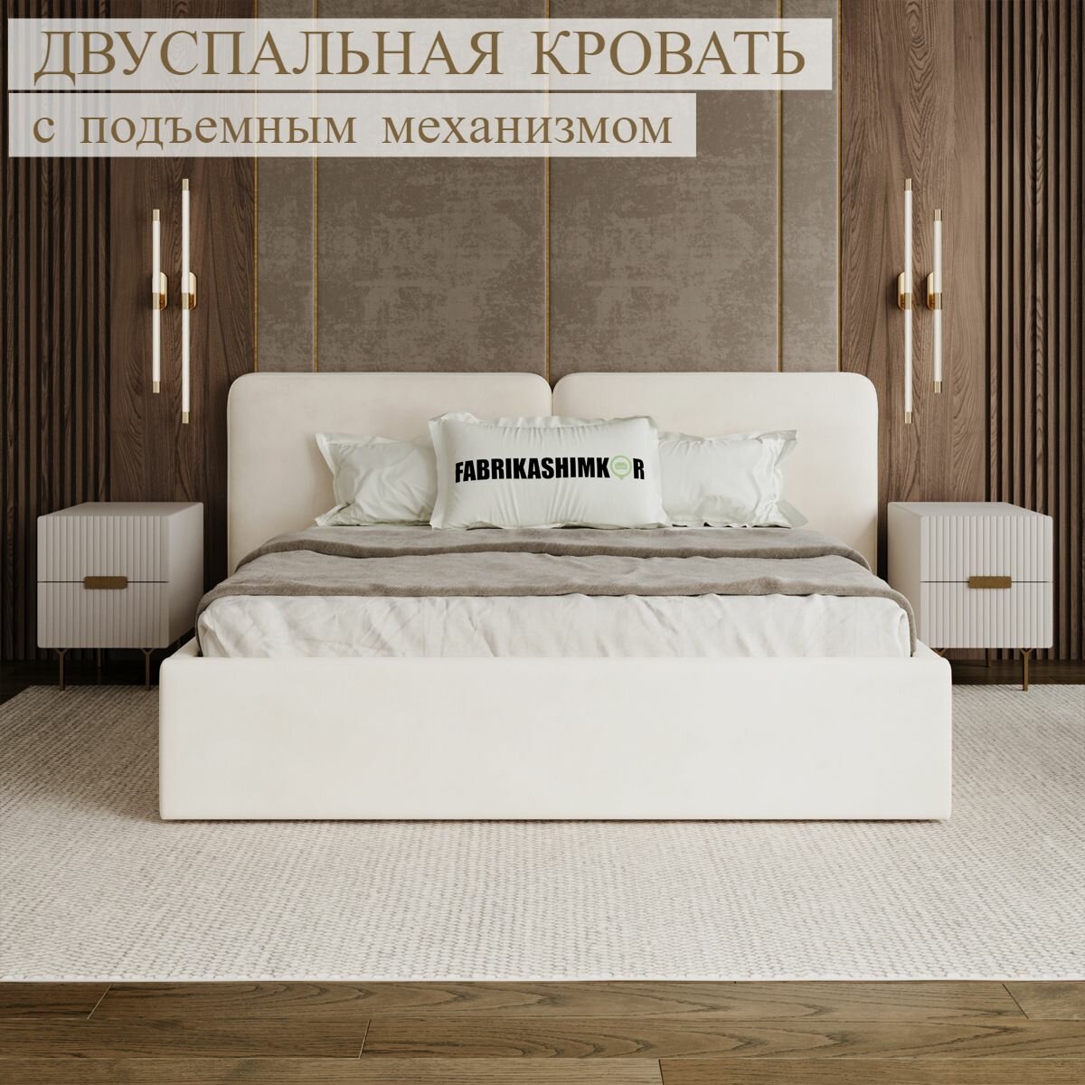 Кровать 160х200 двуспальная дизайнерская AQUA с подъемным механизмом цвет темно-бежевый