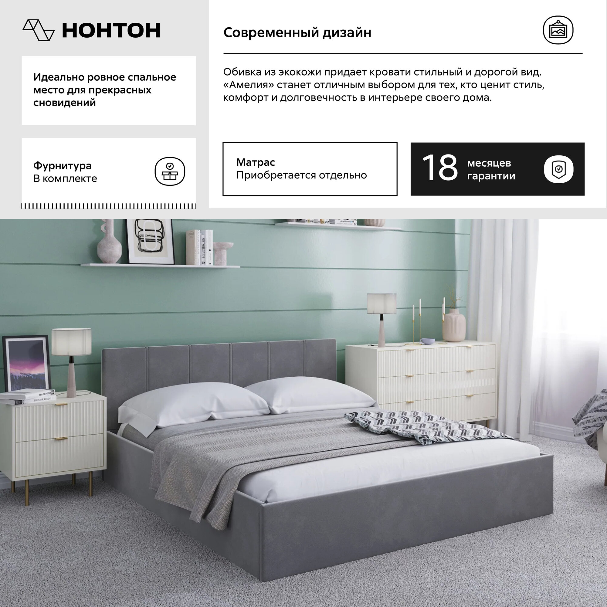 Кровать Нонтон Амелия экокожа Nitro grey 148x209x81 см