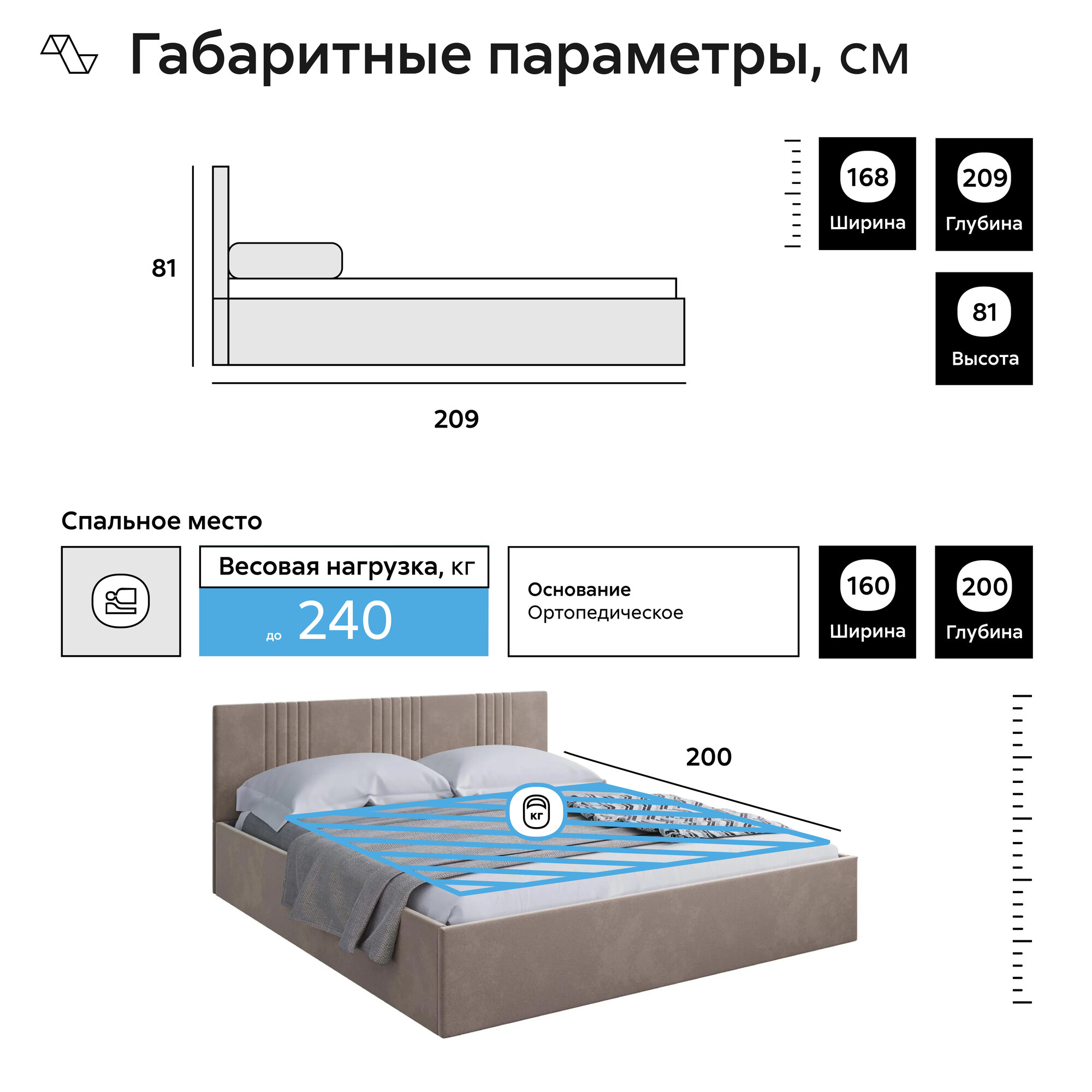 | Дополнительная информация | Указана нагрузка на одно спальное место. |