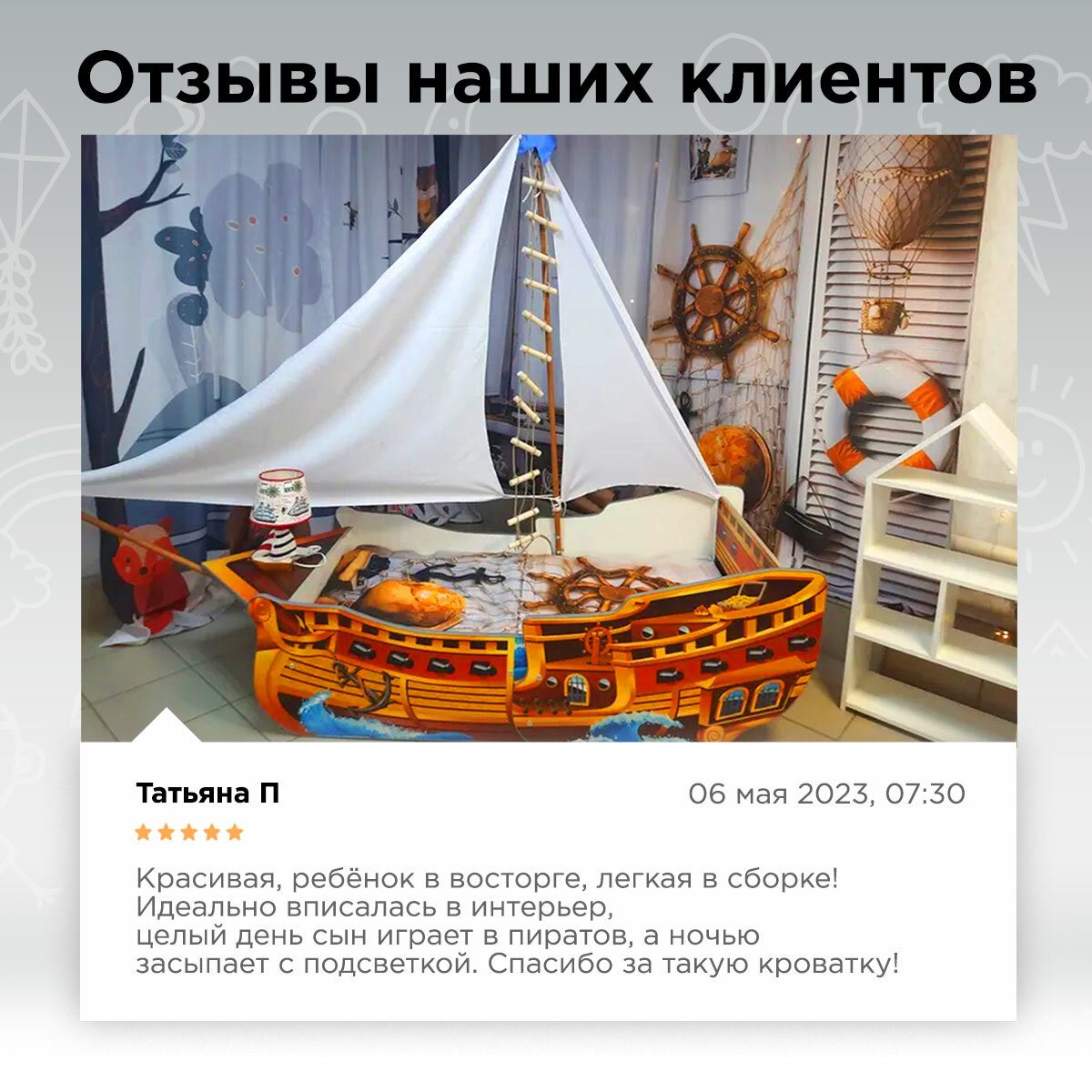 Ниже Вы можете прочитать отзывы на Кровать Корабль "Фрегат" детская кровать для мальчика - 180/85/170см, ознакомится с подробными характеристиками, посмотреть интересные обзоры и фотографии на Кровать Корабль "Фрегат" детская кровать для мальчика - 180/85/170см.