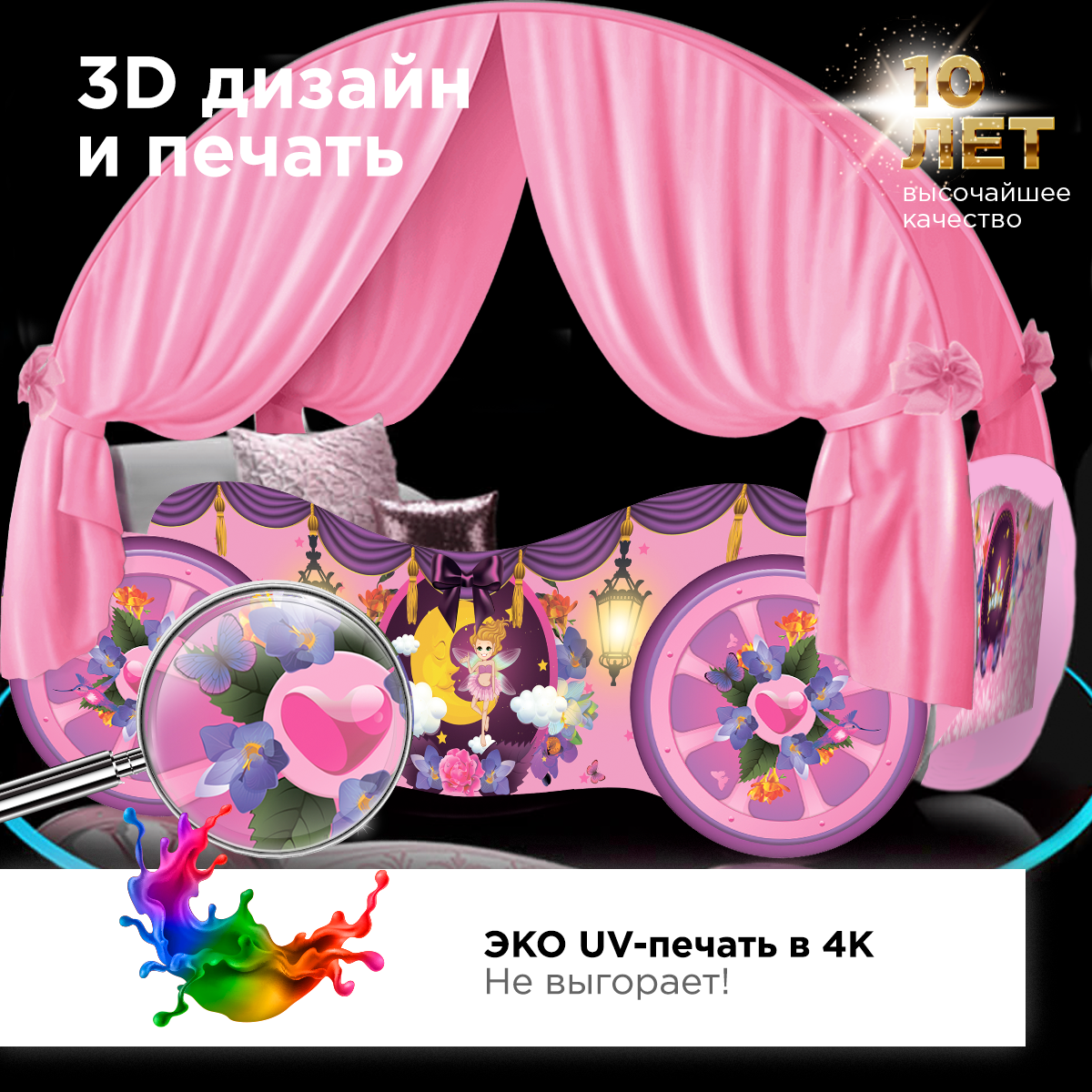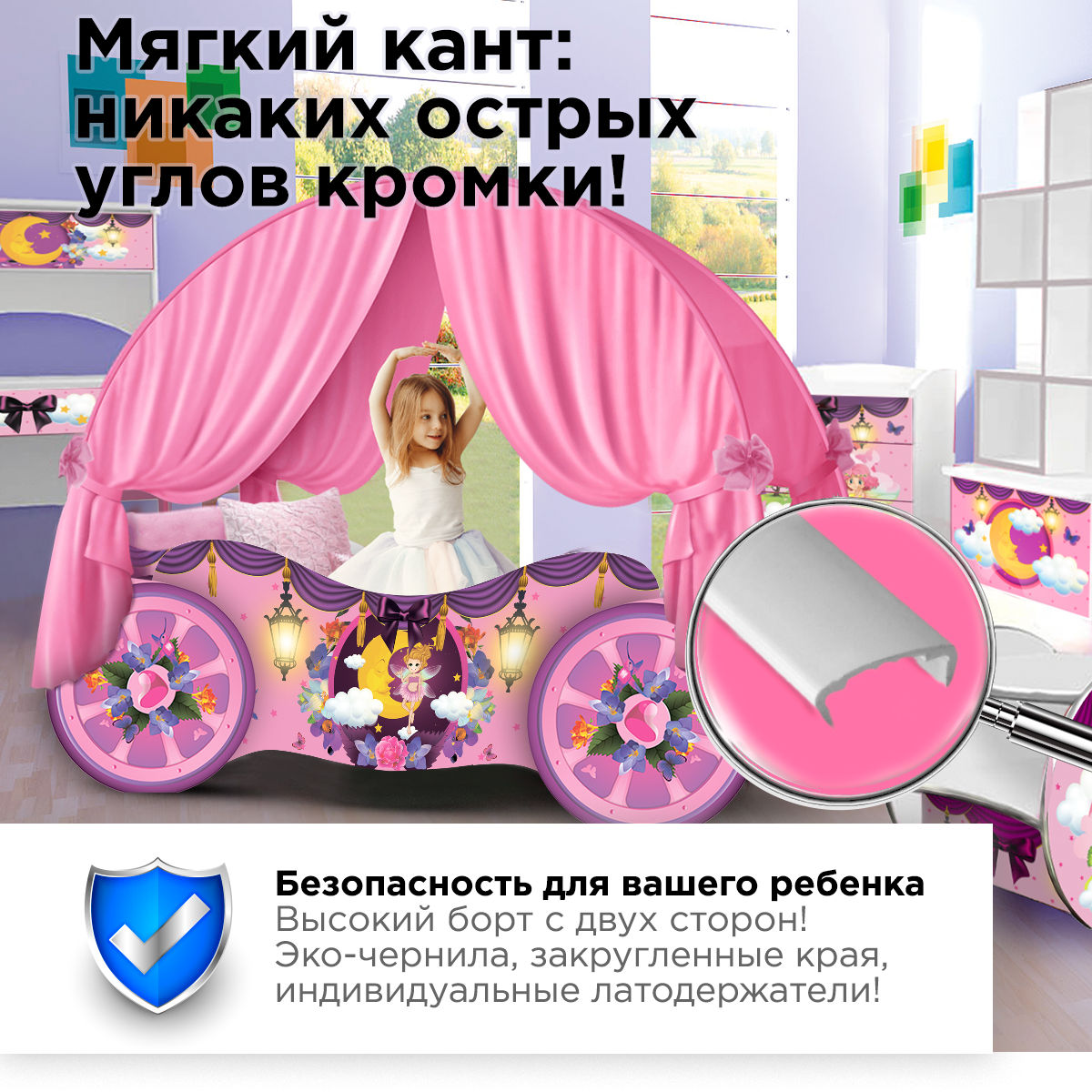| Дополнительная информация | Дизайнерский балдахин в комплекте; крепления латофлексы; 3Д-изображение; края деталей покрыты мягким профилем |
