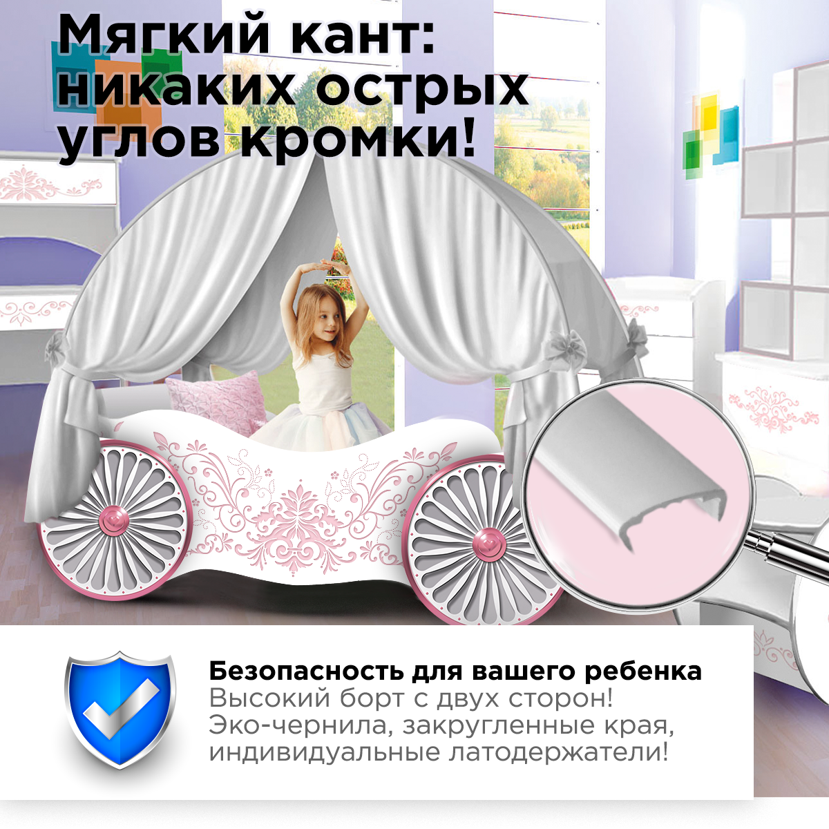Кровать карета детская кровать для девочки «Принцесса 4.0» Розовая - 179/85/60(h160)см