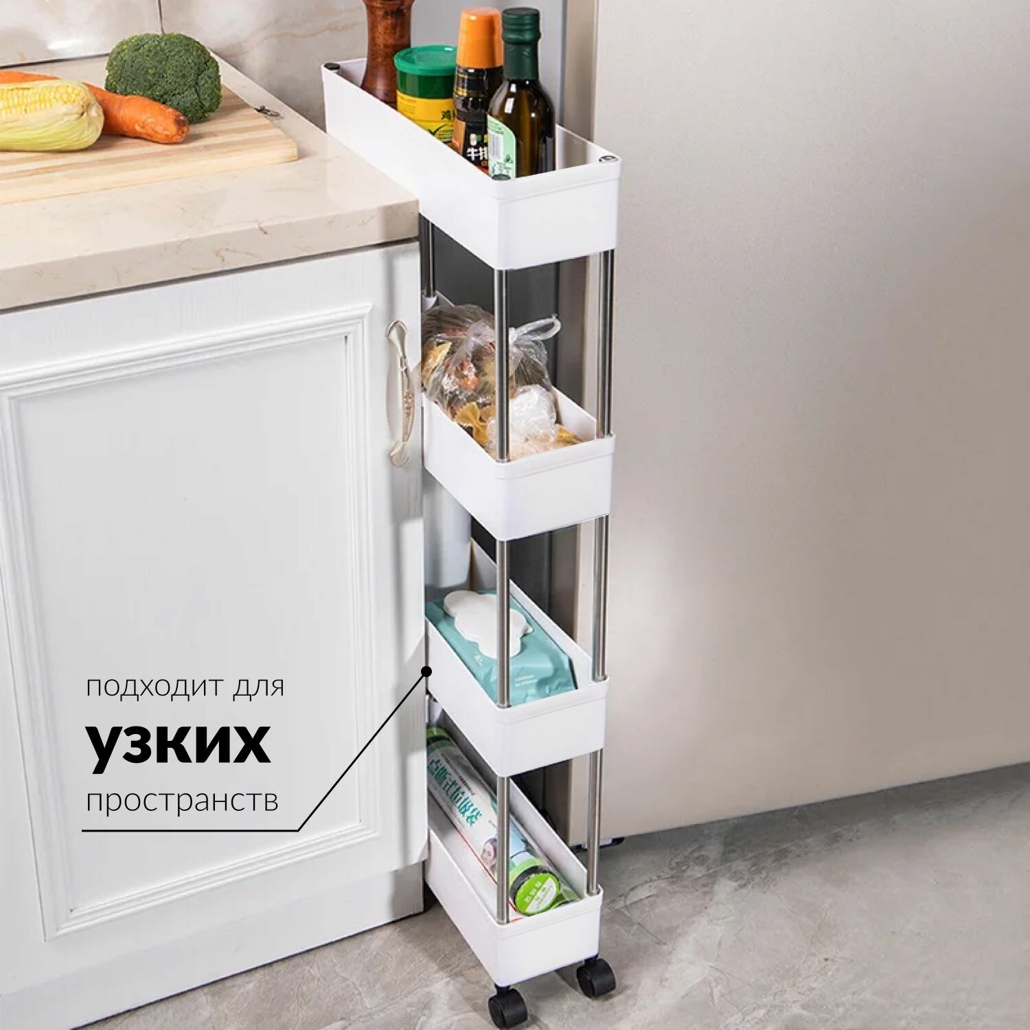 Этажерка узкая Поинт 4 Полки интересное: