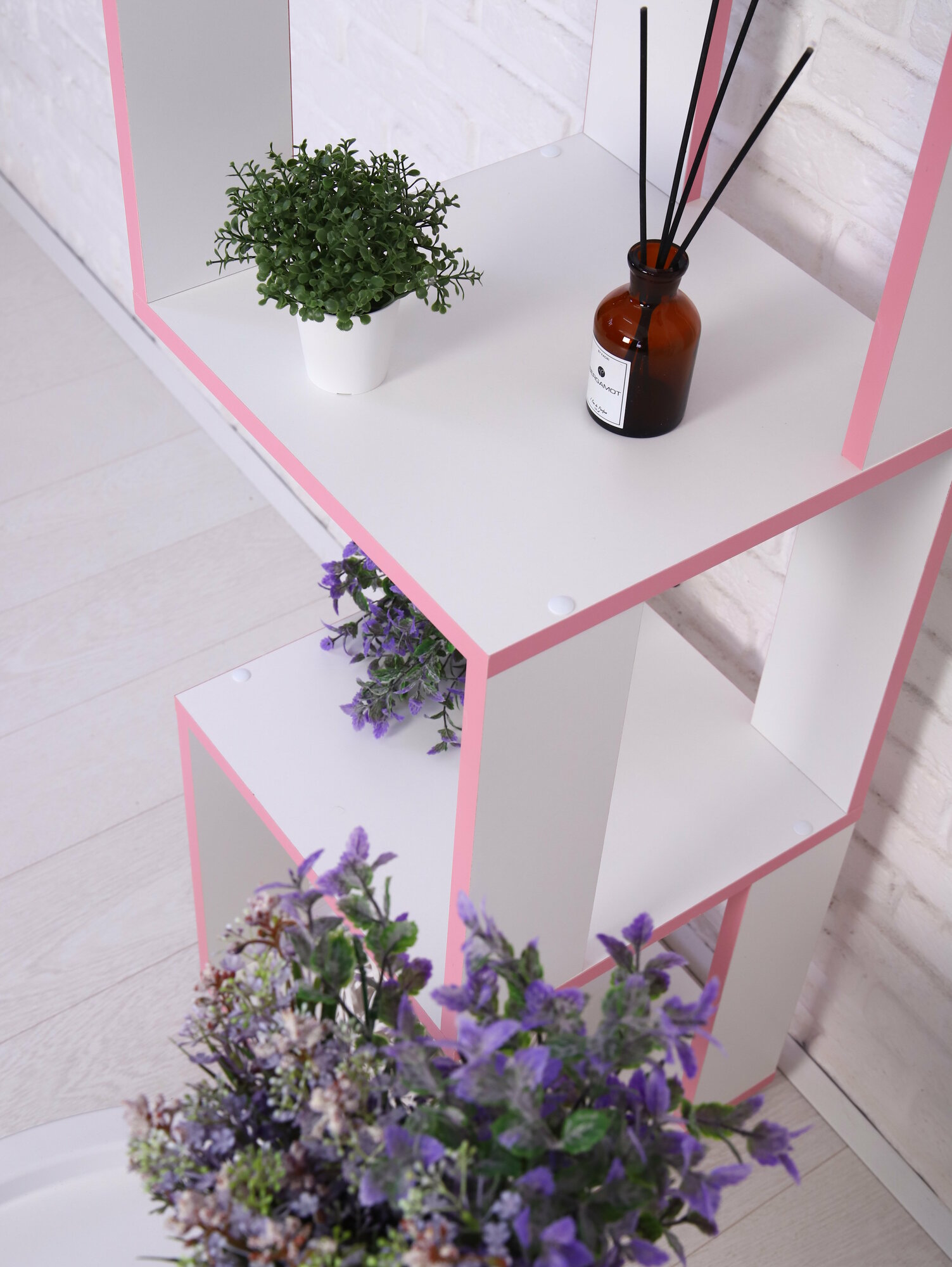 Стеллаж ПроМос "Змейка" 6 полок 180х35х35 см, ЛДСП, белый/розовый