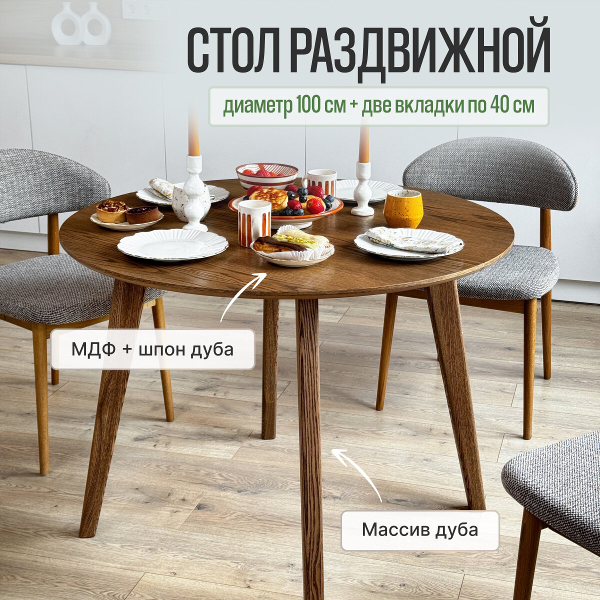 Кухонный обеденный стол - трансформер раздвижной из дерева Шпон Дуба 100x100x75см интересное: