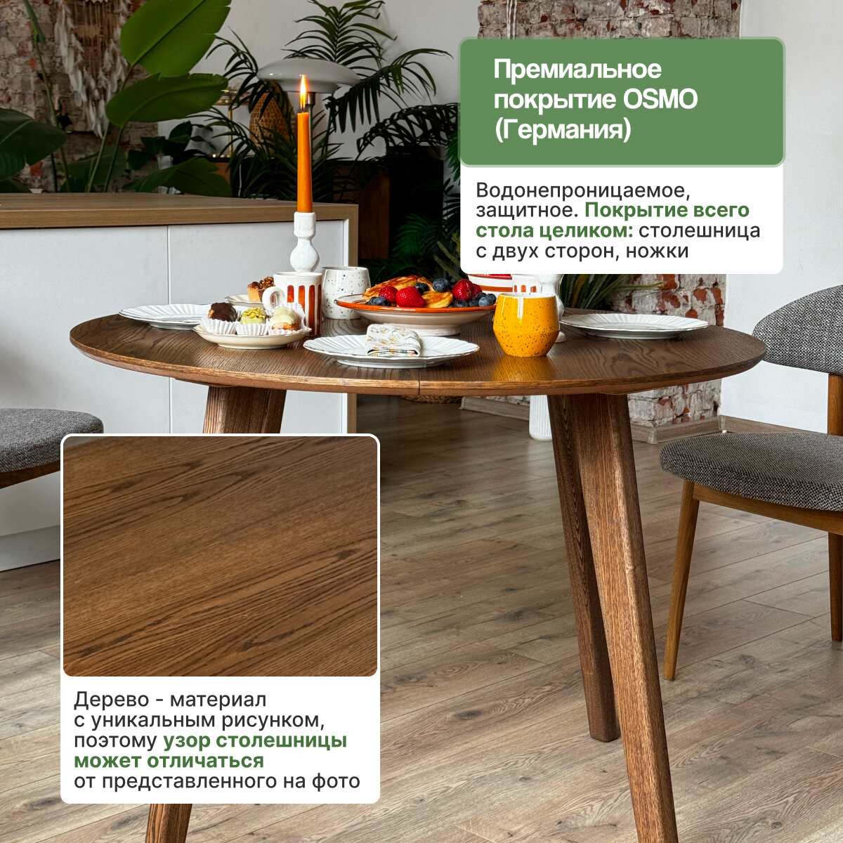 Обеденный стол на кухню из натурального дуба на 3-8 персон диаметр 800 мм