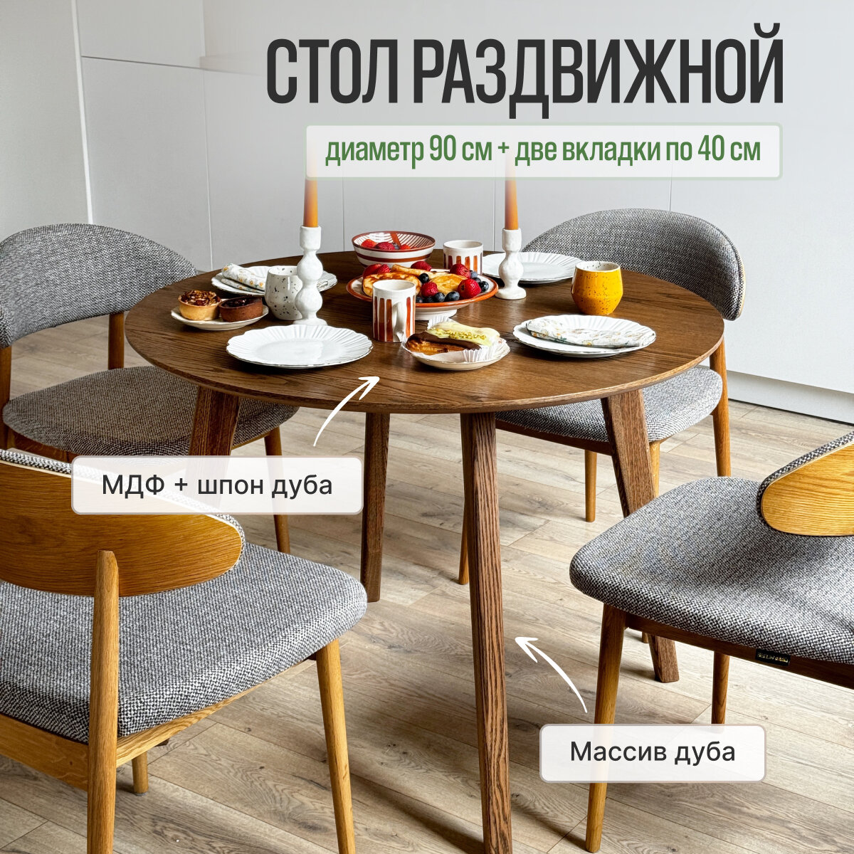 Кухонный обеденный стол - трансформер раздвижной из дерева Шпон Дуба 90x90x75см интересное:
