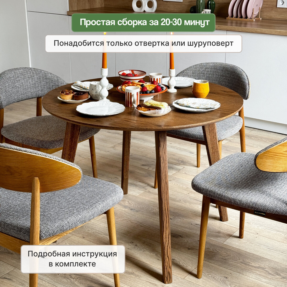 Обеденный стол на кухню из натурального дуба на 3-8 персон диаметр 800 мм