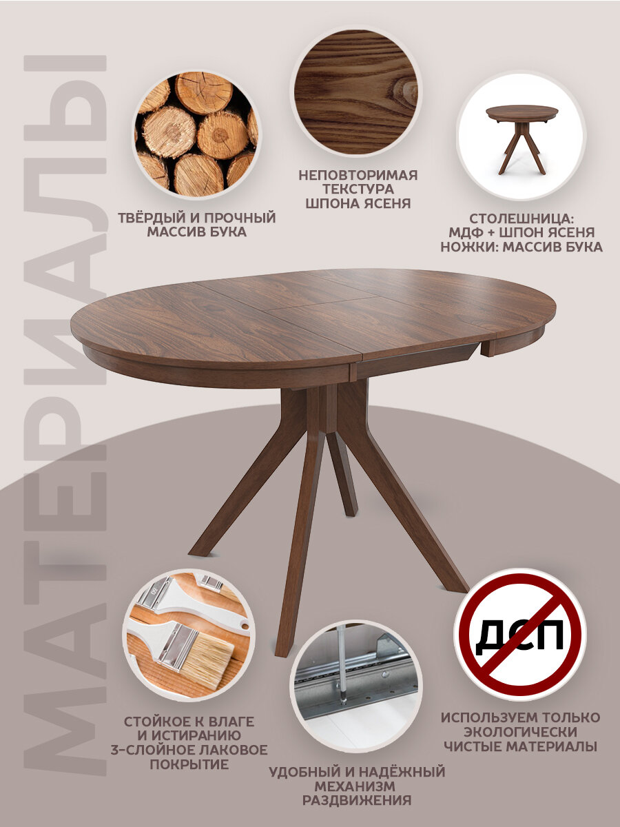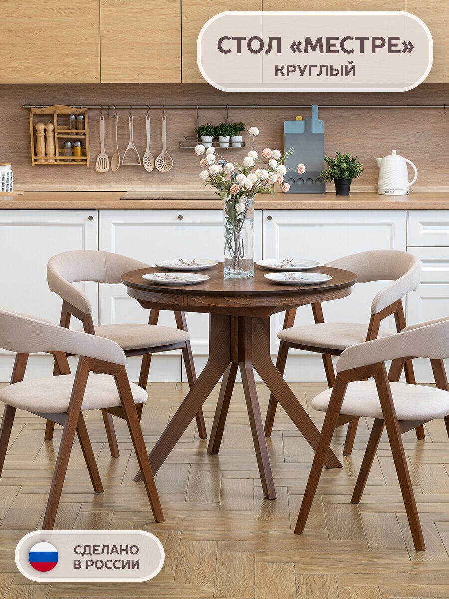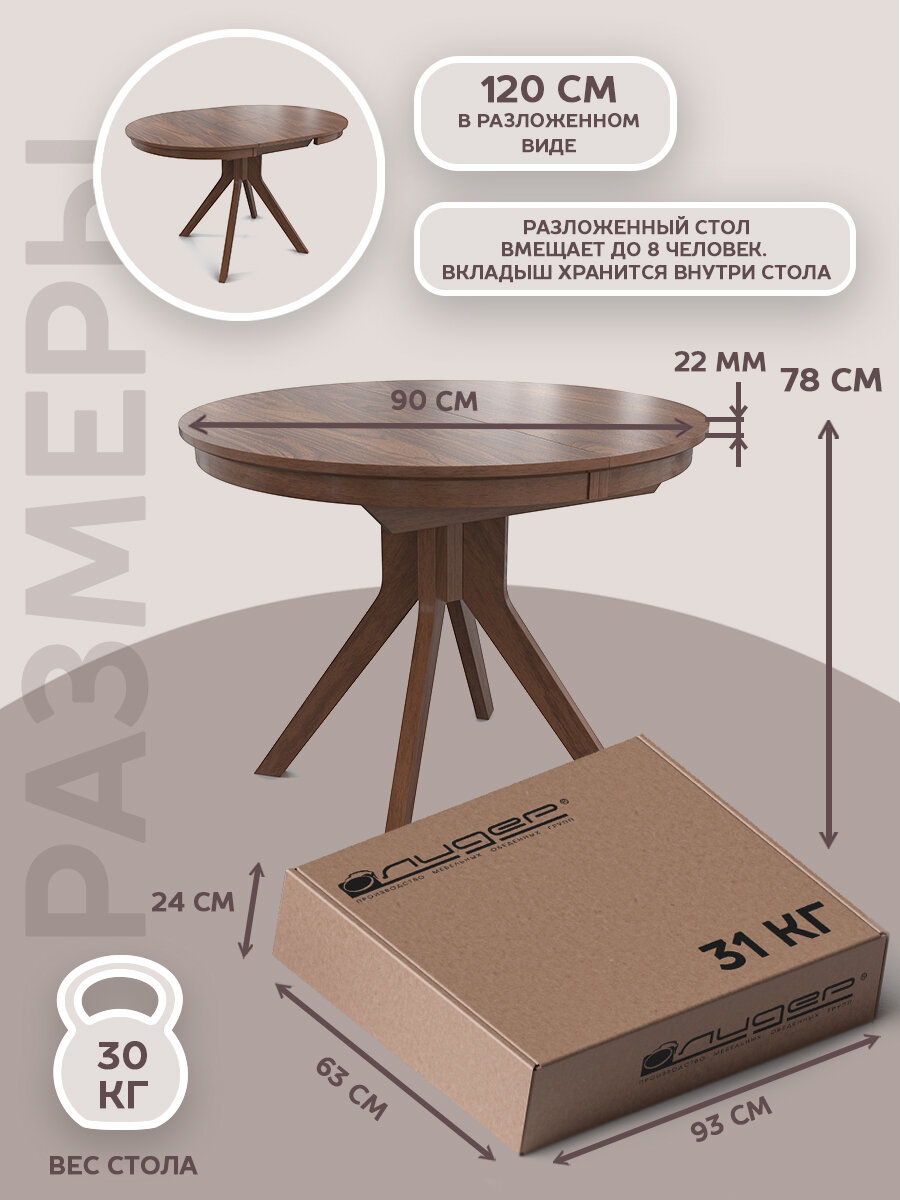 Стол Лидер из массива "Местре" - раздвижной, круглый, коричневый и орех интересное: