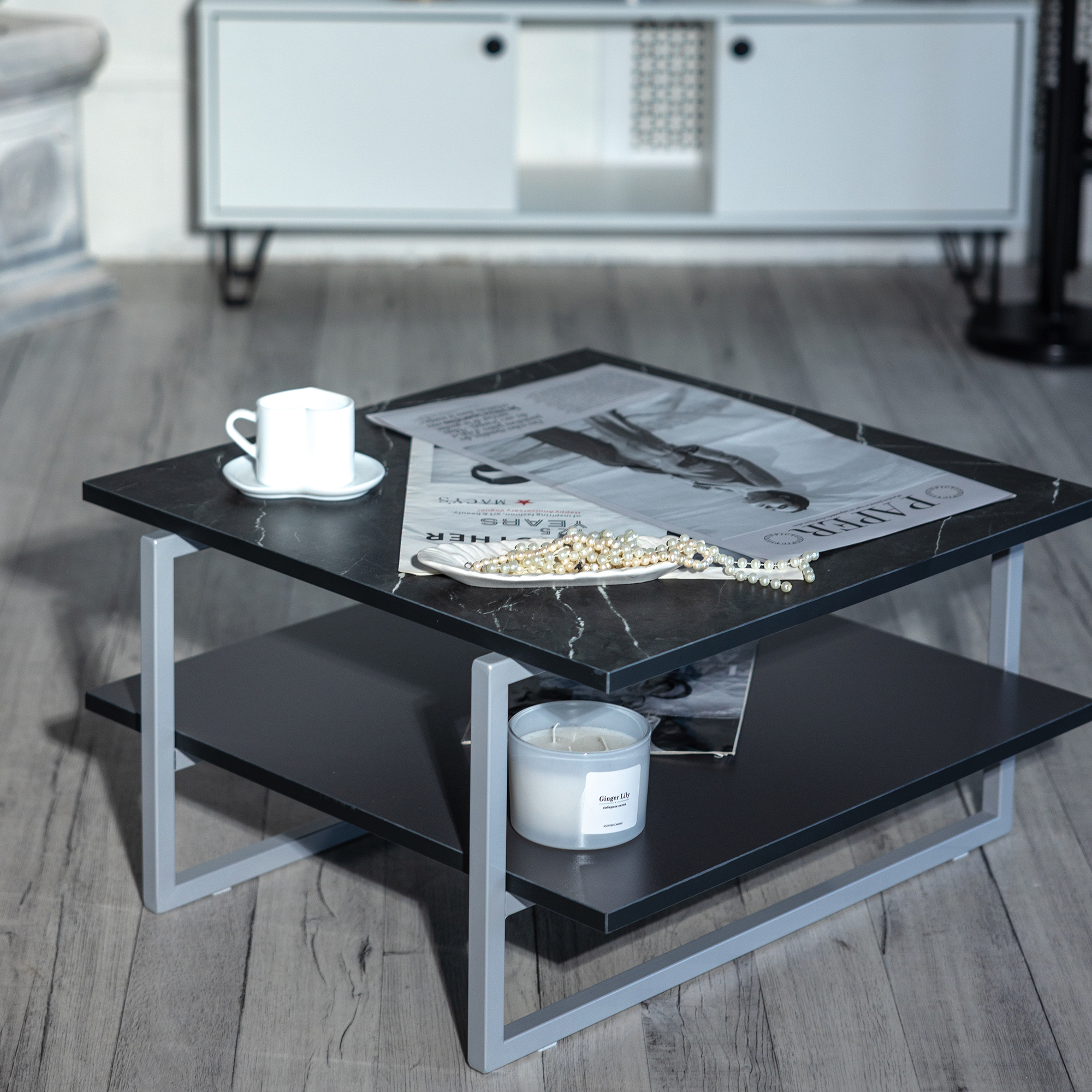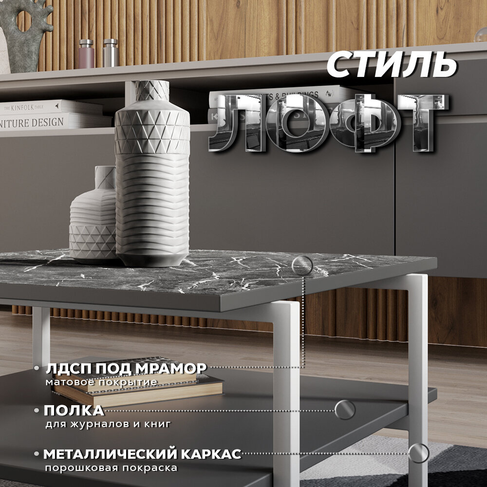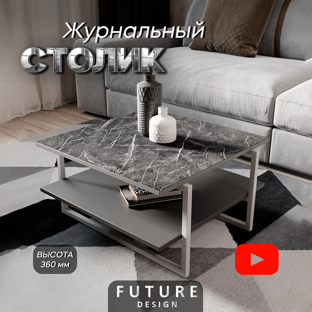 Журнальный столик для гостиной Moon, черный мрамор/серый, 60х60х36 интересное: