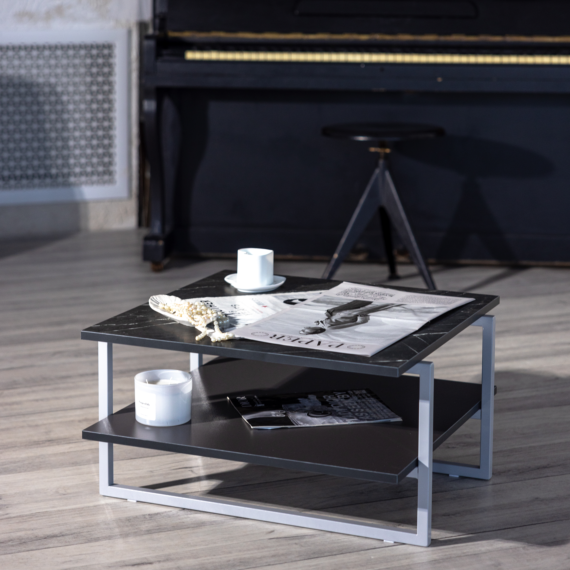 Купить Журнальный столик для гостиной Moon, черный мрамор/серый, 60х60х36