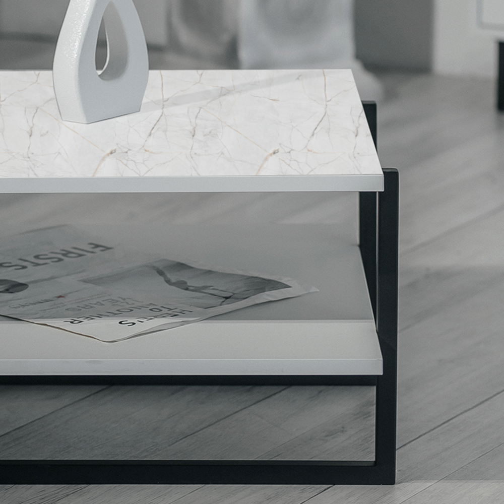 Купить Журнальный столик для гостиной Moon, мрамор/черный, 60х60х36
