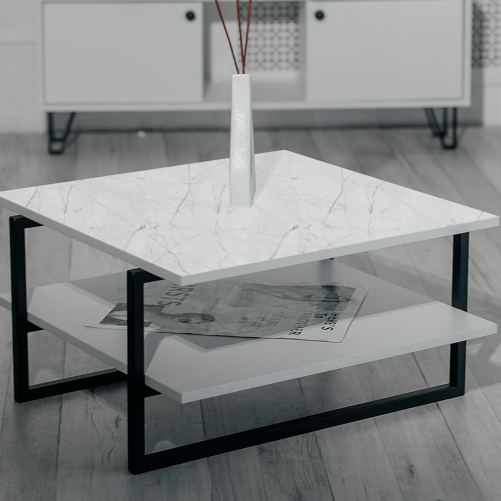 Журнальный столик для гостиной Moon, белый мрамор/серый, 60х60х36
