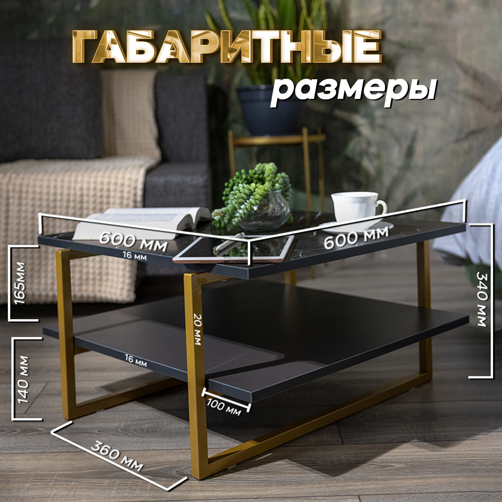 Журнальный столик для гостиной Moon, мрамор/черный, 60х60х36