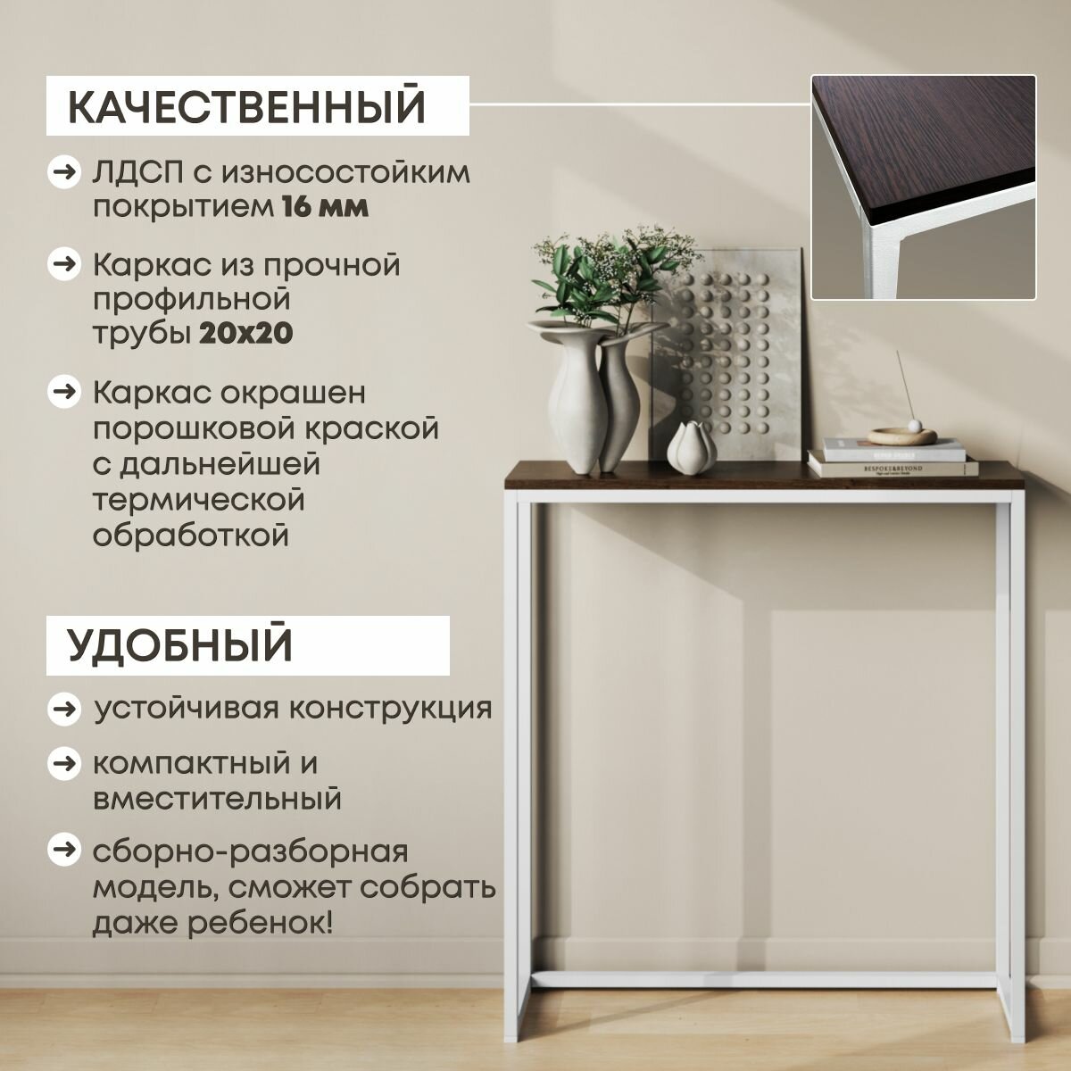 Ниже Вы можете прочитать отзывы на Консольный столик, Венге, 85х100х25 см, ознакомится с подробными характеристиками, посмотреть интересные обзоры и фотографии на Консольный столик, Венге, 85х100х25 см.