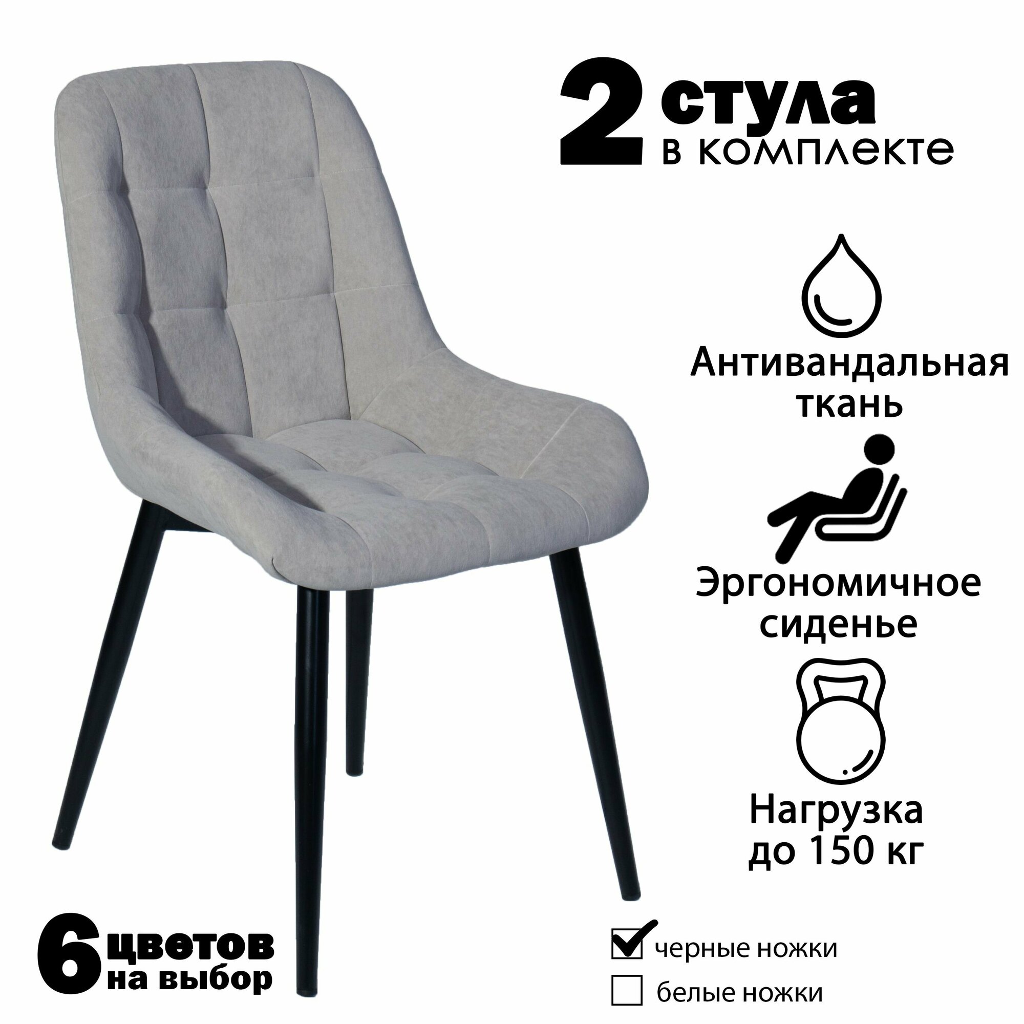 Купить Стул мягкий кухонный, комплект из 2 стульев для кухни румба, серый велюр, черные ножки