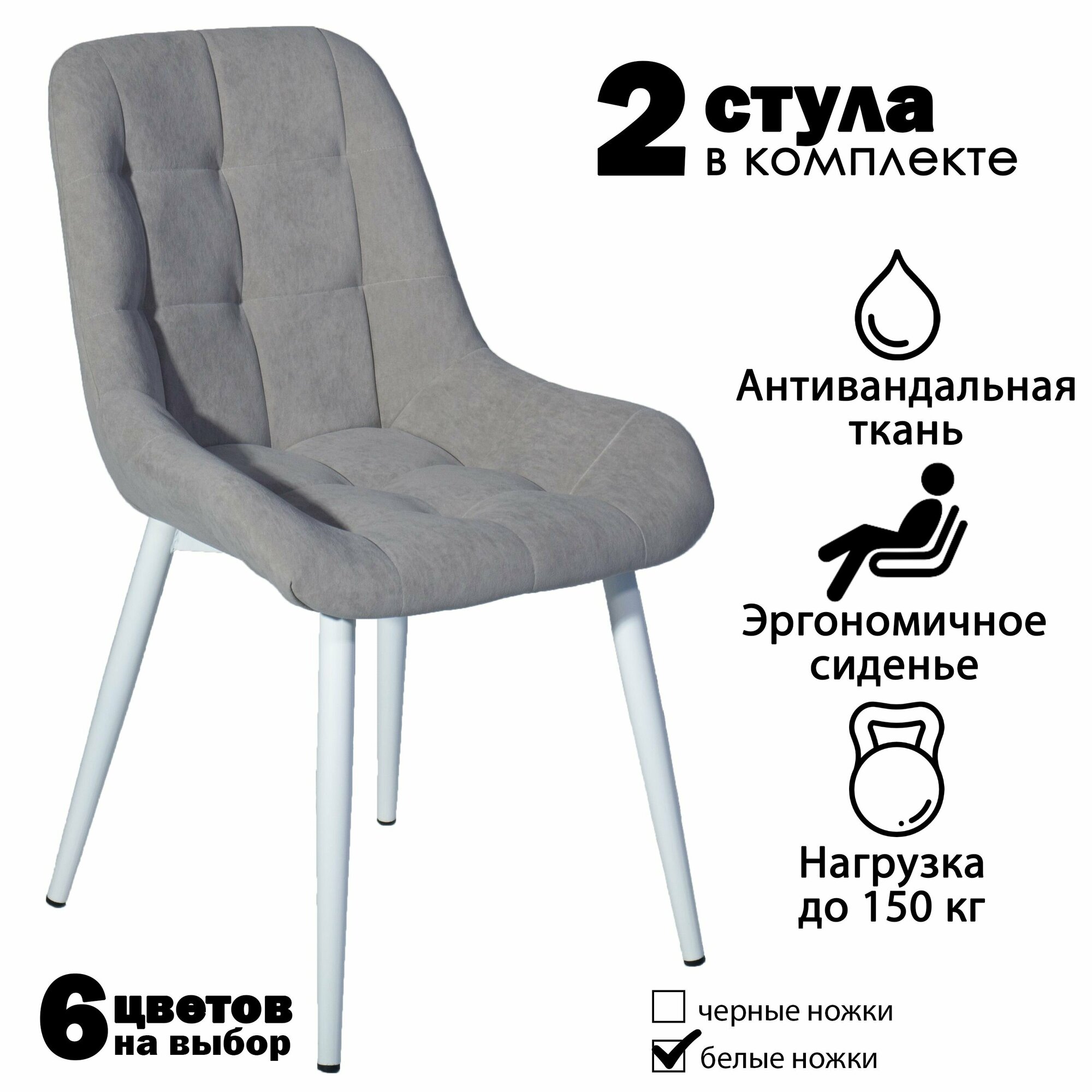 Купить Стул мягкий кухонный, комплект из 2 стульев для кухни румба, серый велюр, белые ножки