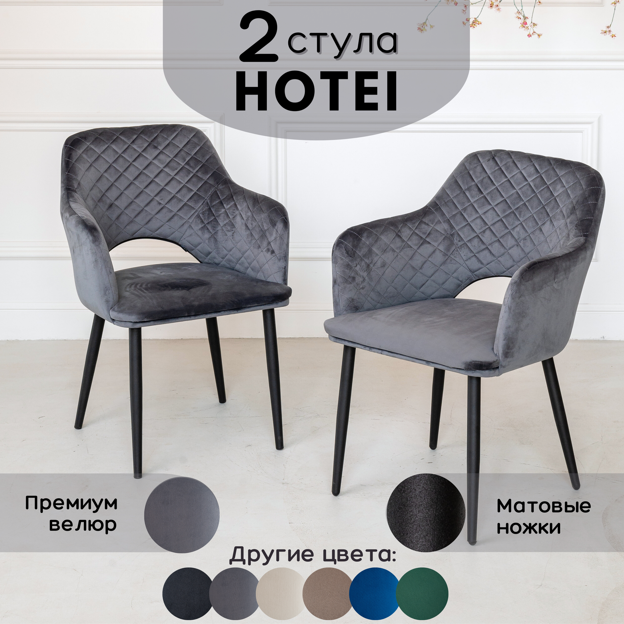 Стулья для кухни STULER chairs Комплект мягких стульев Hotei 2 шт, Серый велюр черные матовые ножки интересное: