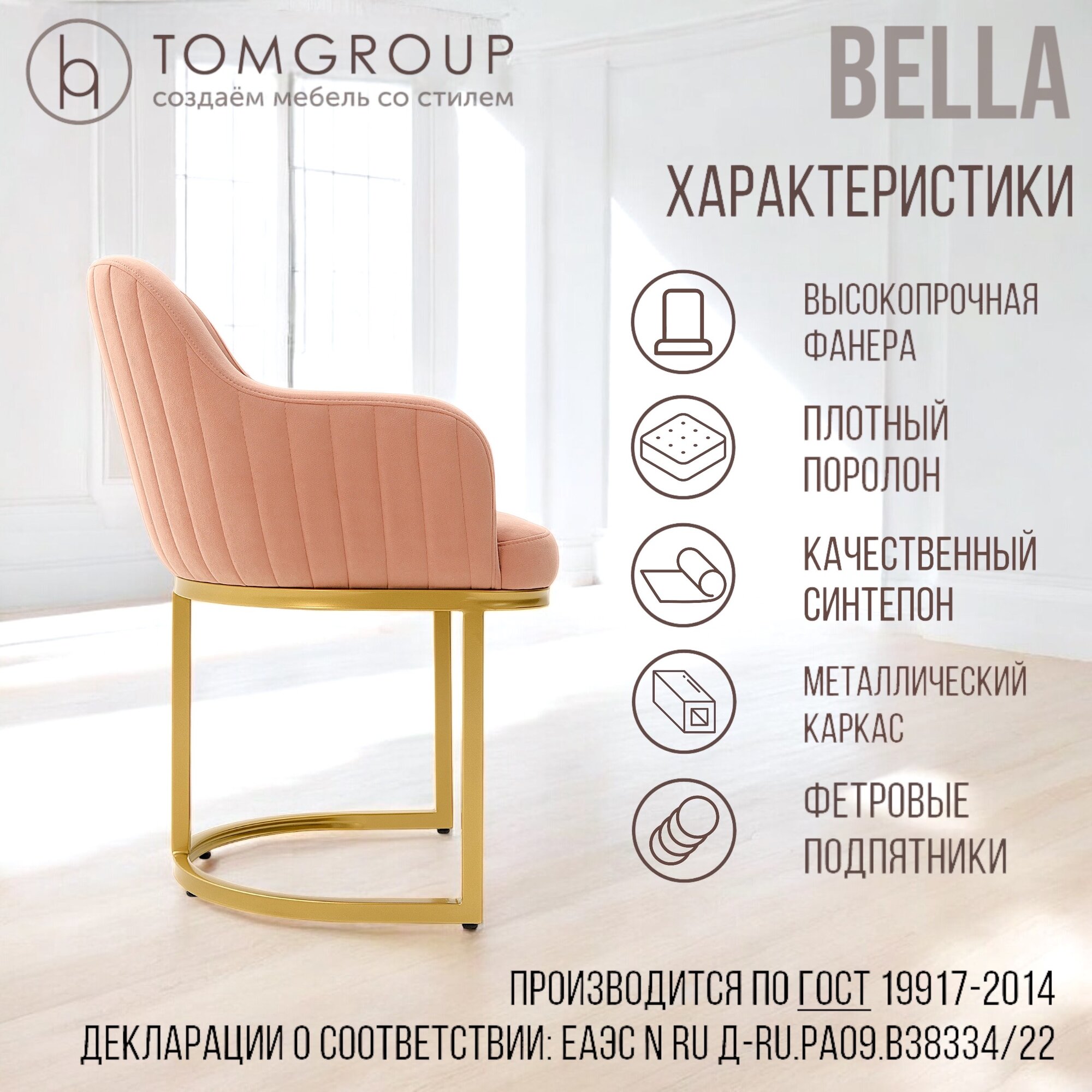 СохранитьTOMGROUP Стул Bella Desert / Gold, розовый с золотым каркасом для кухни, велюр интересное: