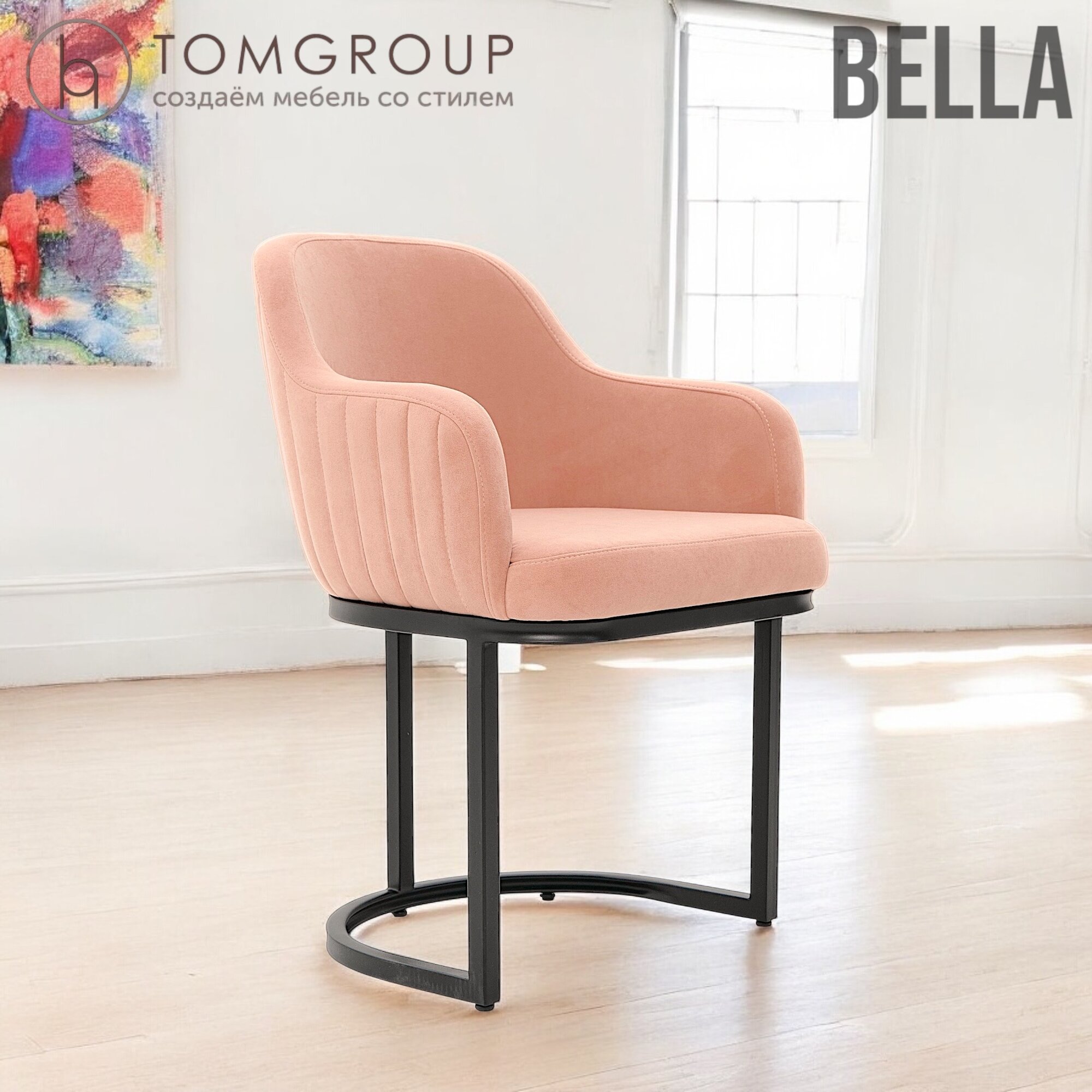 СохранитьTOMGROUP Стул Bella Desert / Black, розовый с черным каркасом для кухни, велюр интересное: