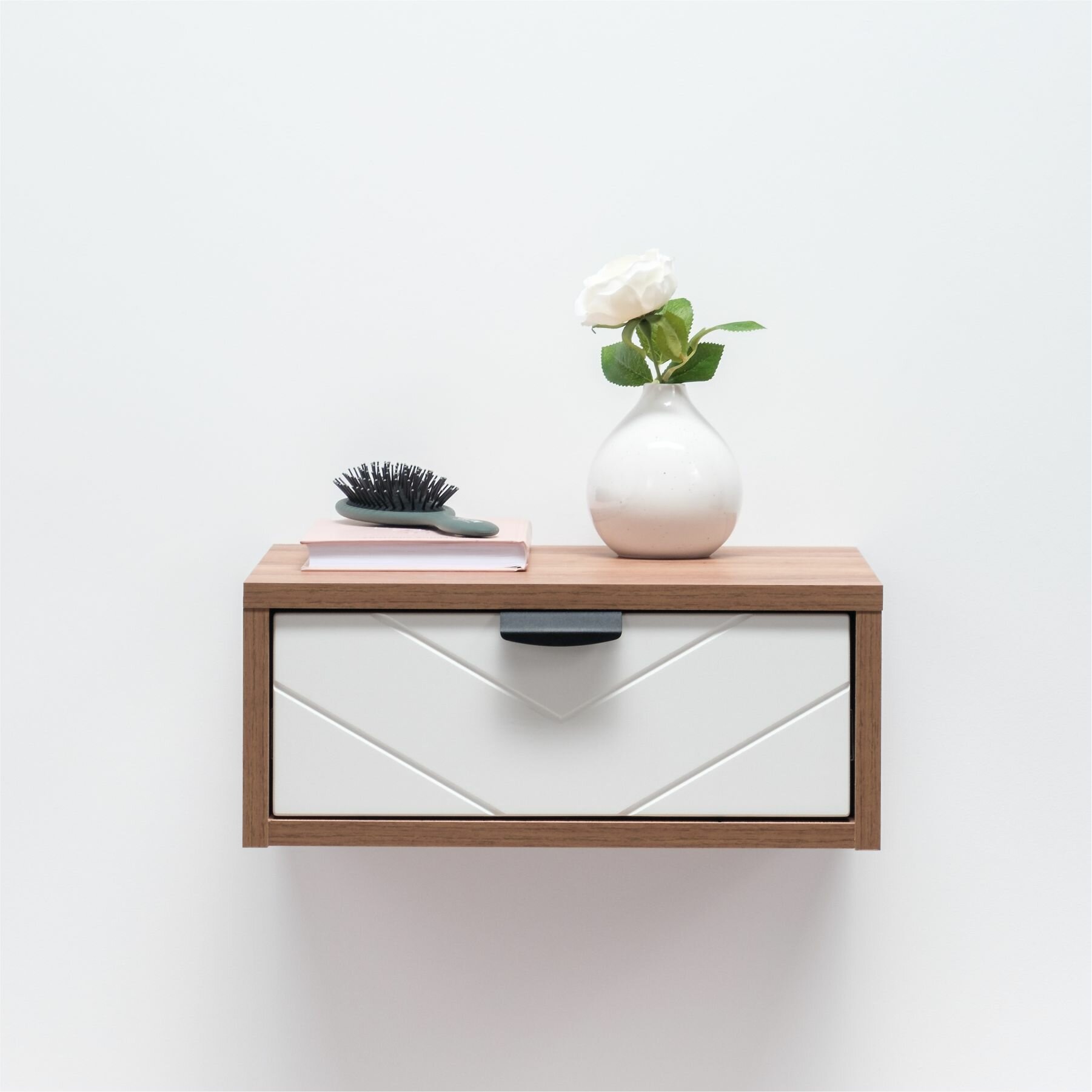 Тумба подвесная прикроватная Венеция 16.155.01 Дуб Эндгрейн элегантный, Веллюто Капучино
