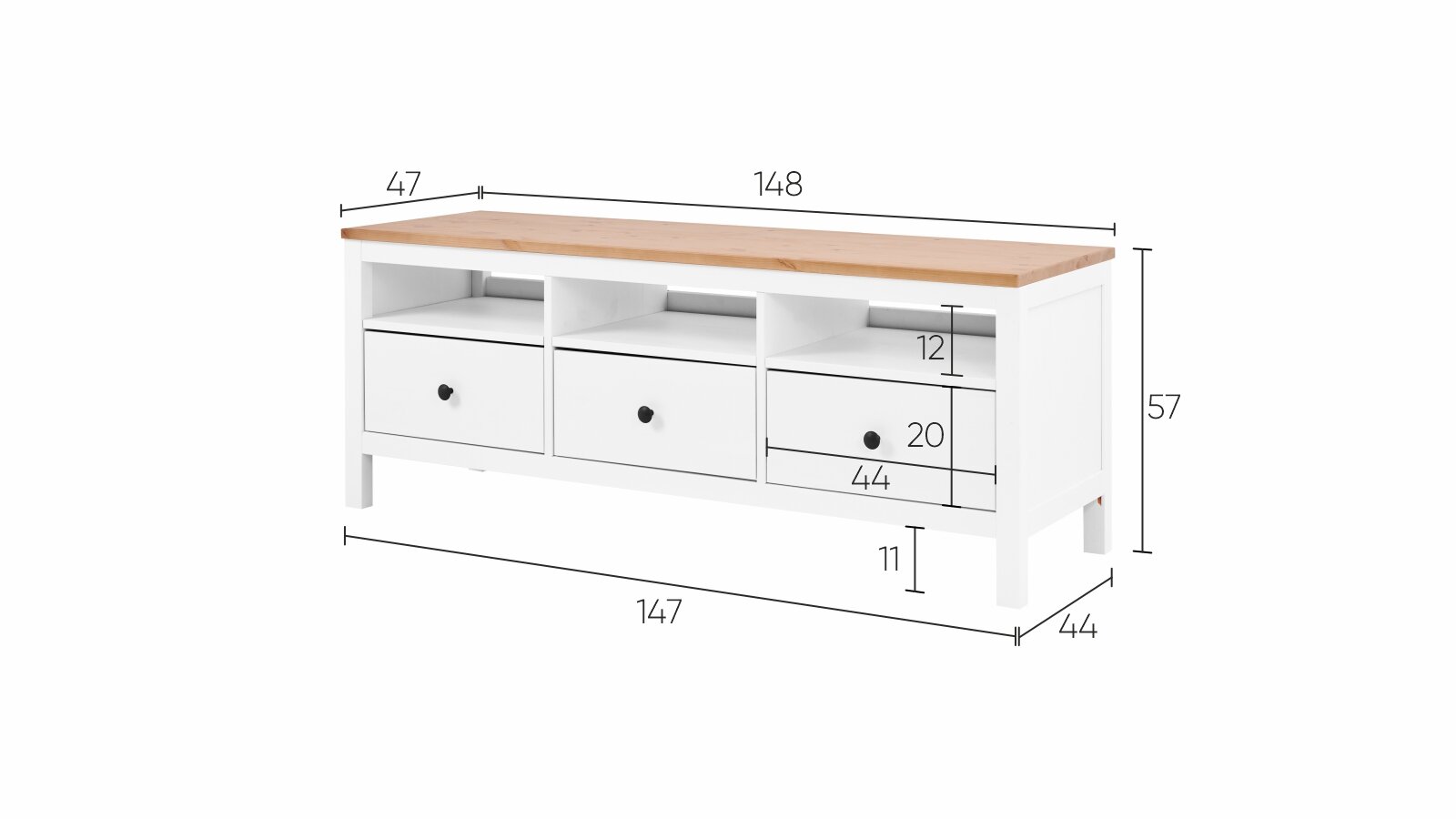 Тумба под ТВ Хемнэс Hemnes/ Кымор, 148х47х57 см, белый/светло-коричневый