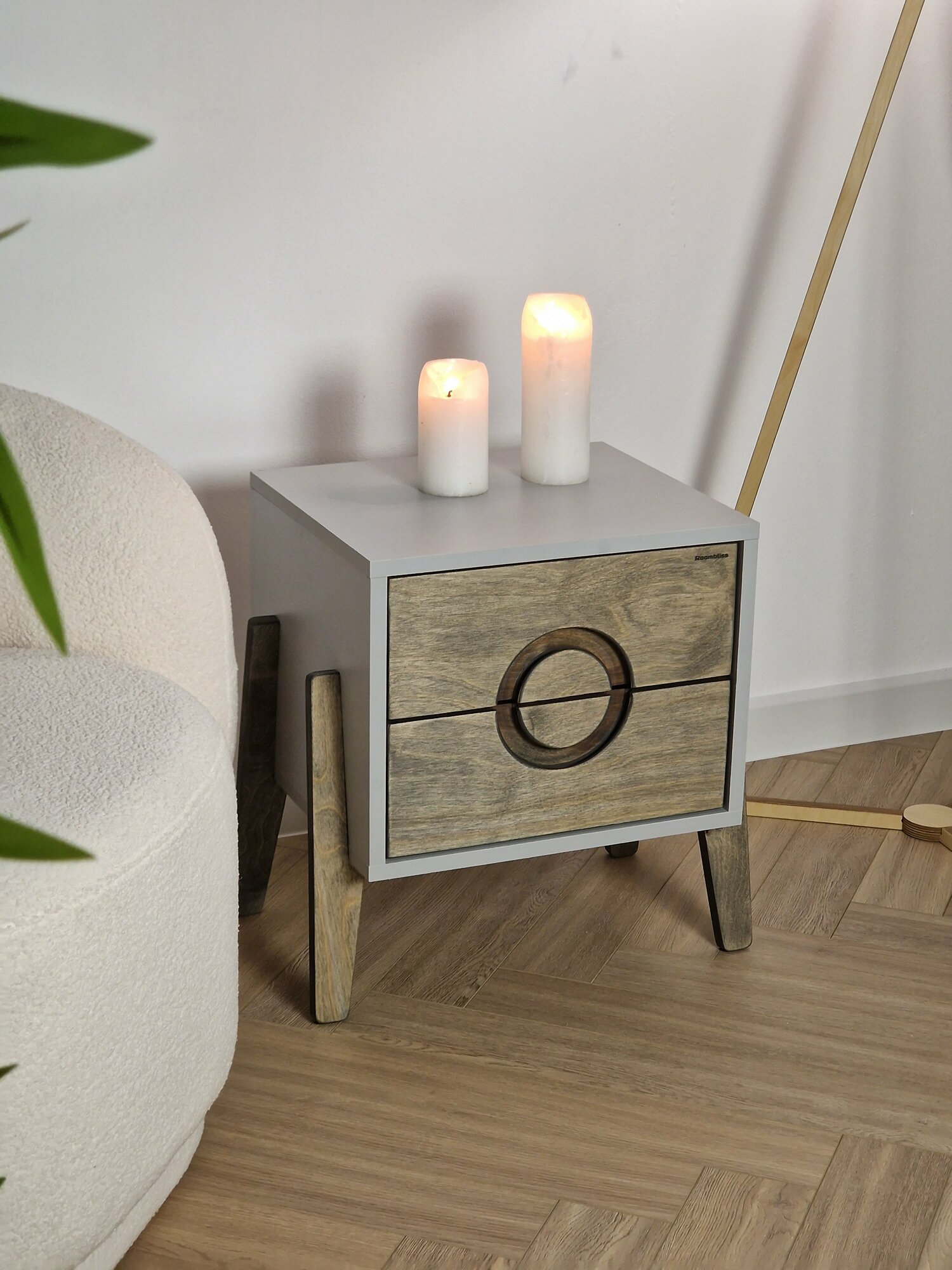 Тумба прикроватная на ножках белый графит