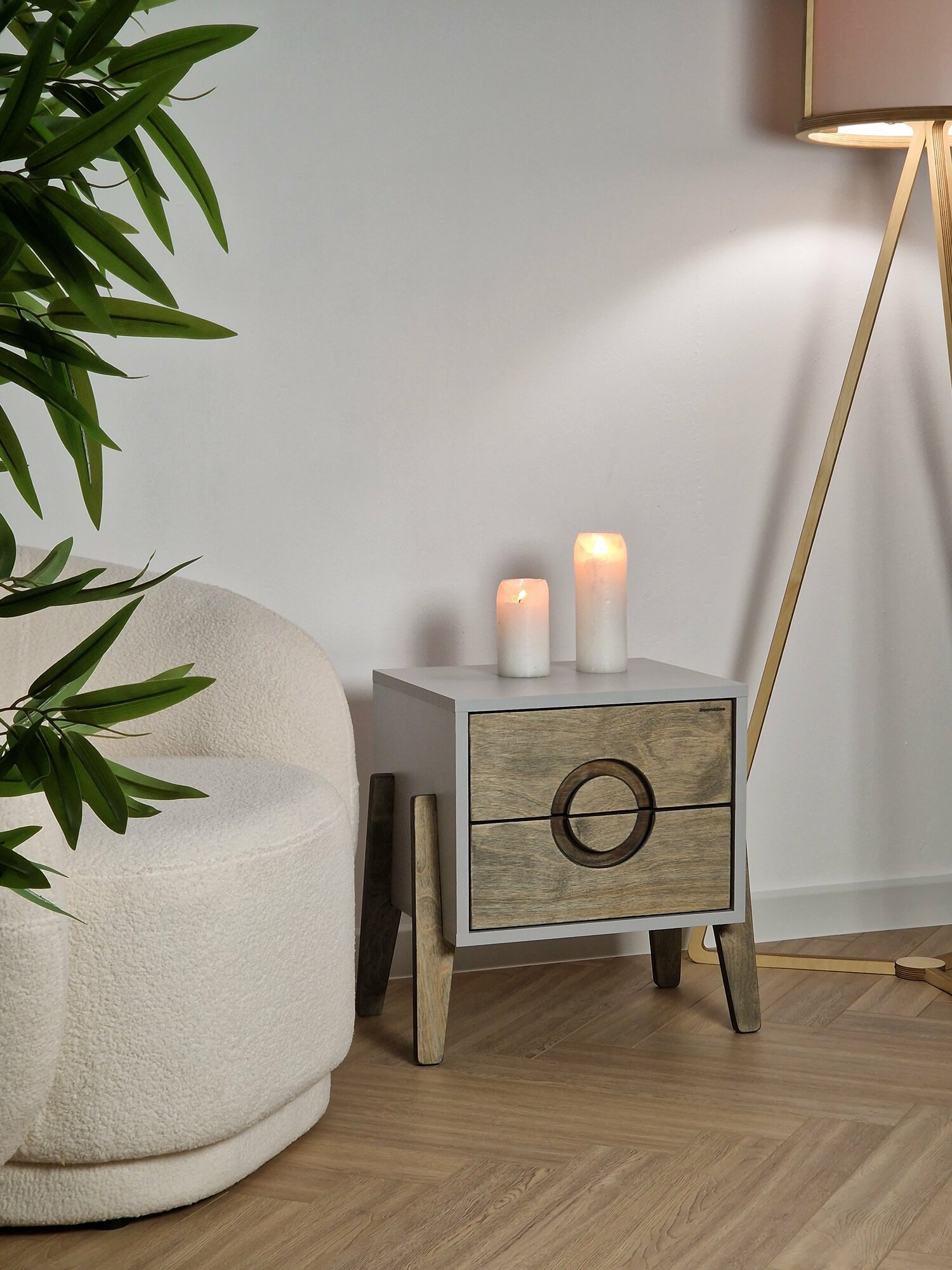 Тумба прикроватная на ножках белый коричневый