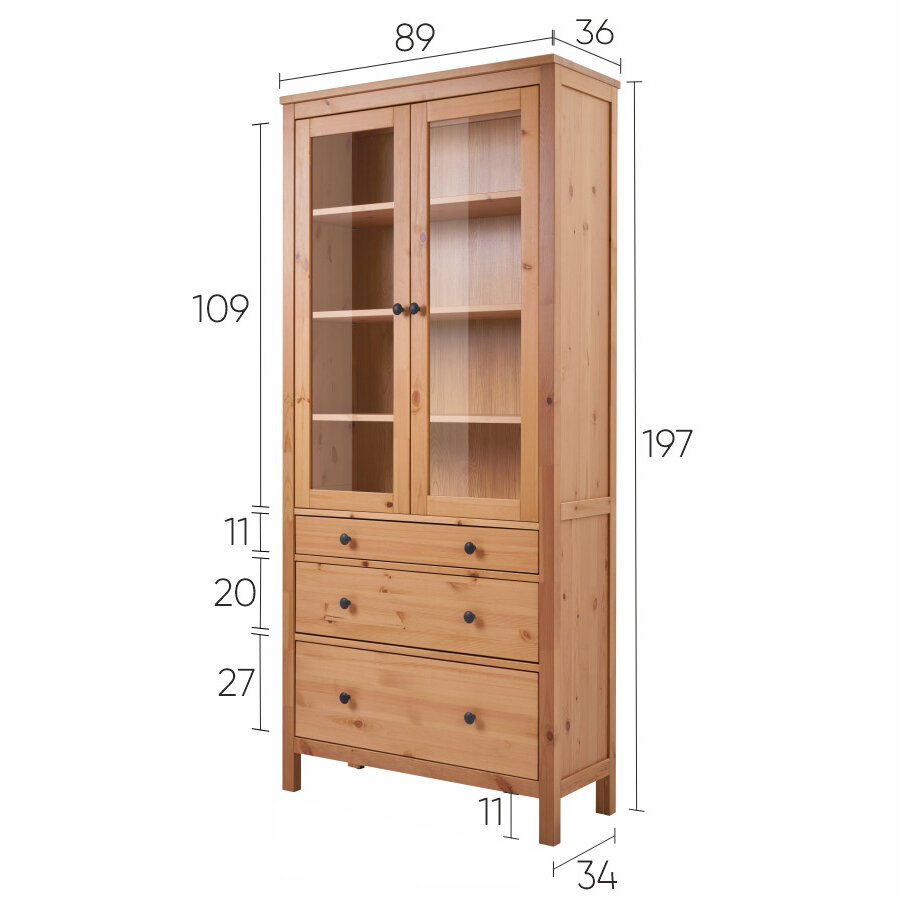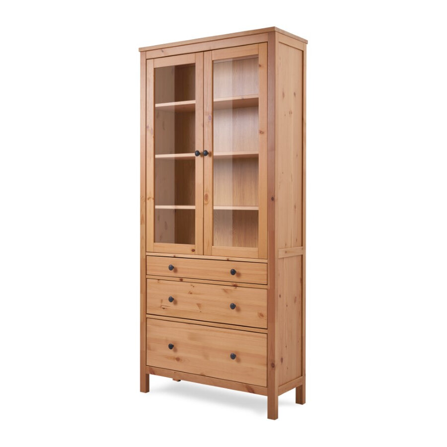 Шкаф-витрина Хемнэс Hemnes/Кымор, 3 ящика, 90х198х37 см, светло-коричневый интересное: