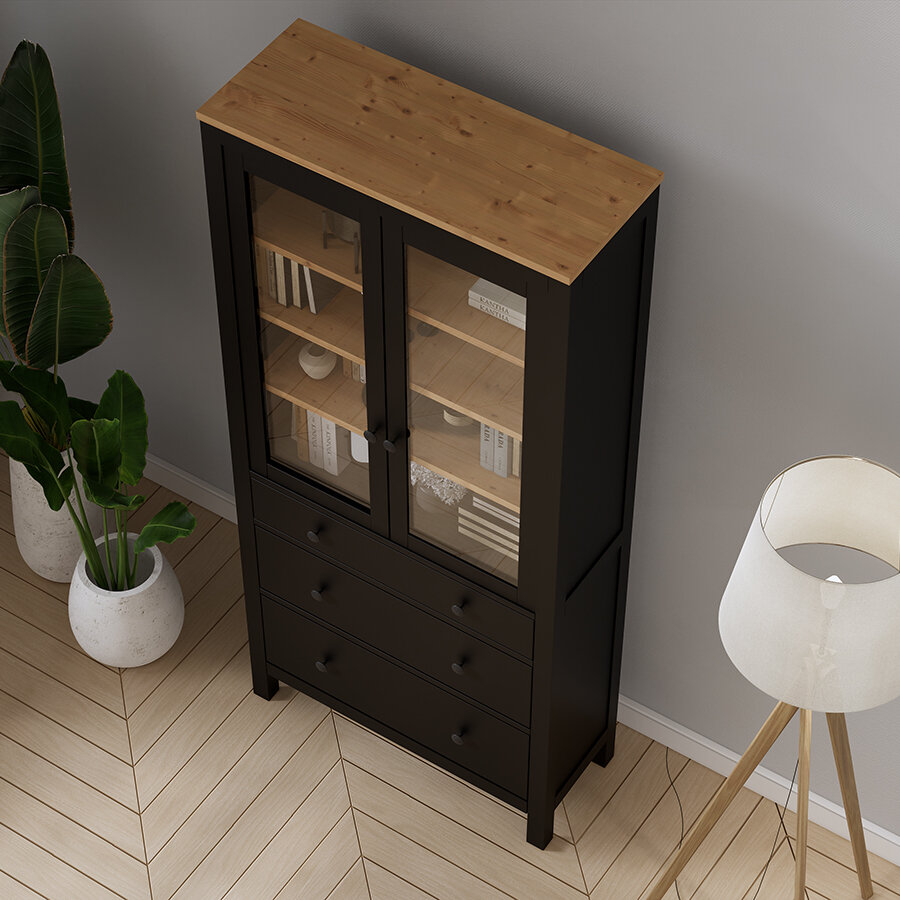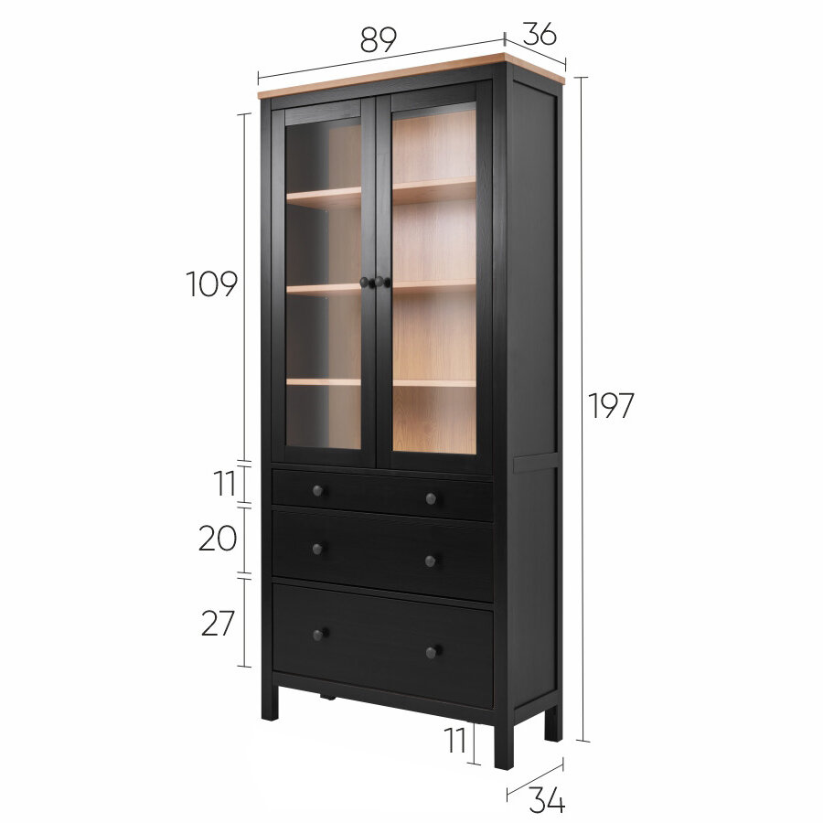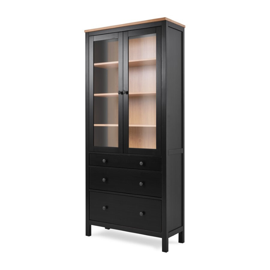Шкаф-витрина Хемнэс Hemnes/Кымор, 3 ящика, 90х198х37 см, черный/светло-коричневый интересное: