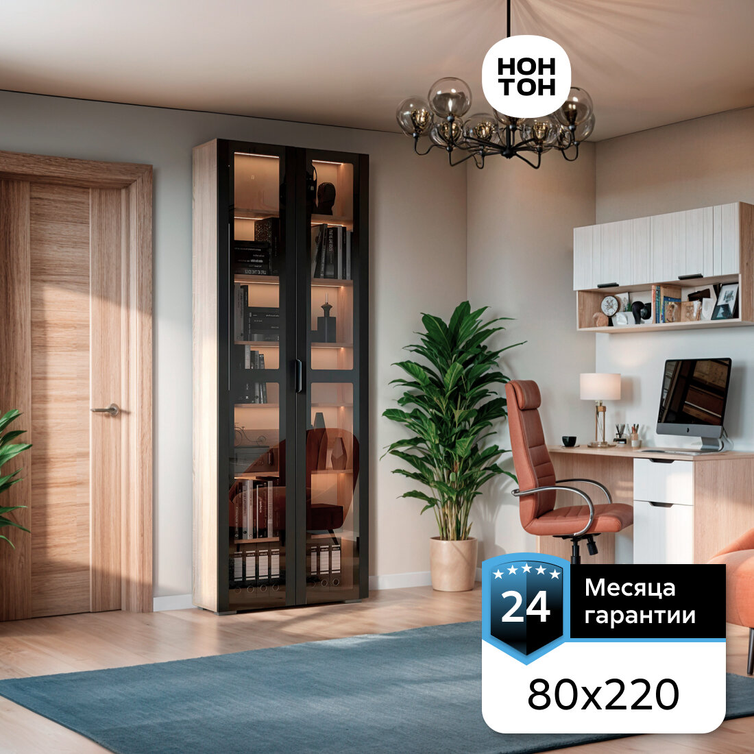 Шкаф книжный Норд ШКВ-800 - дуб сонома / софт черный