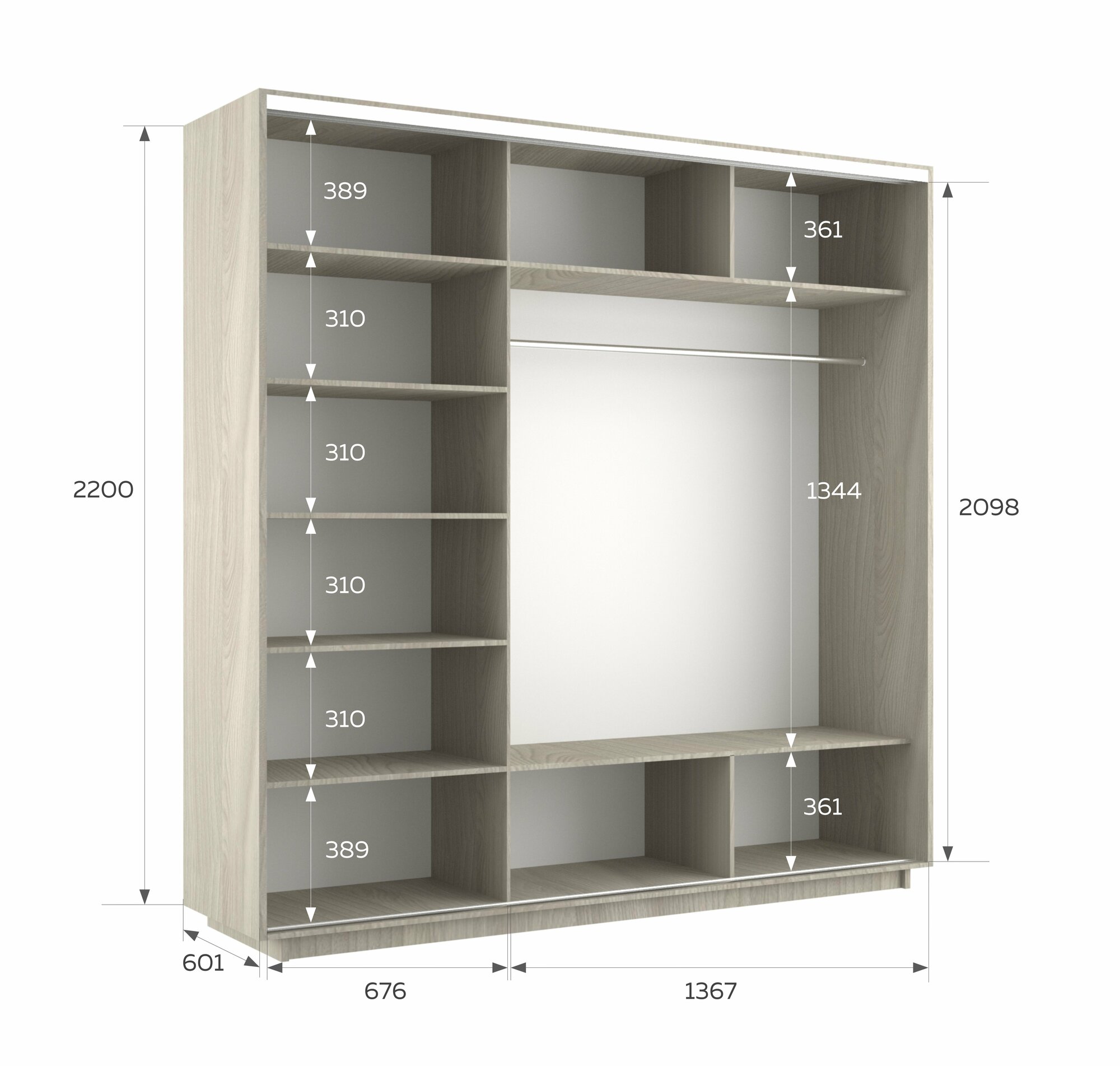 Шкаф-купе Экспресс Медиум 3-x дв 210 x 220 x 60 Зеркало Сонома