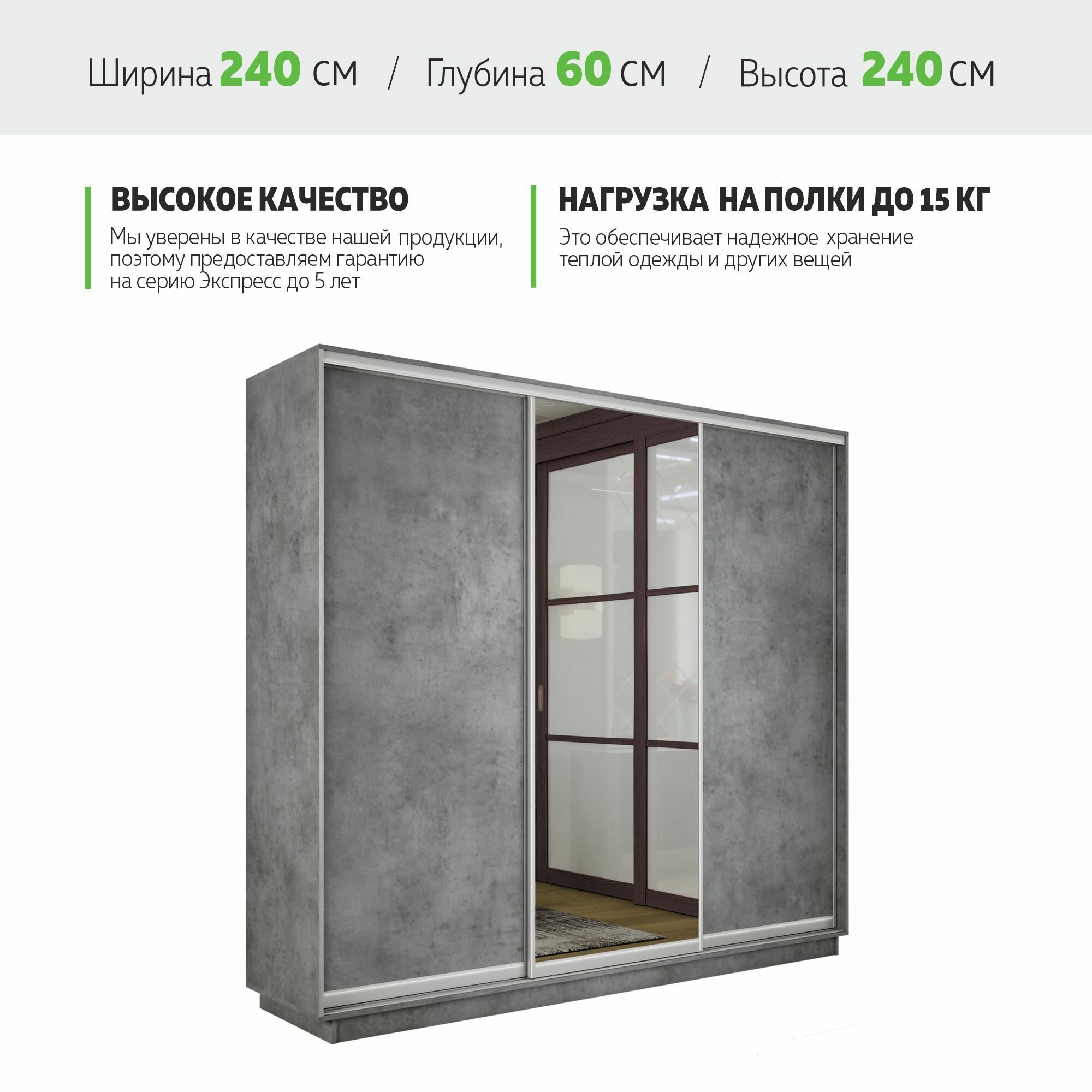 Шкаф-купе 2,4 Экспресс 3-х дверный 240х240х60 Зеркало Бетон