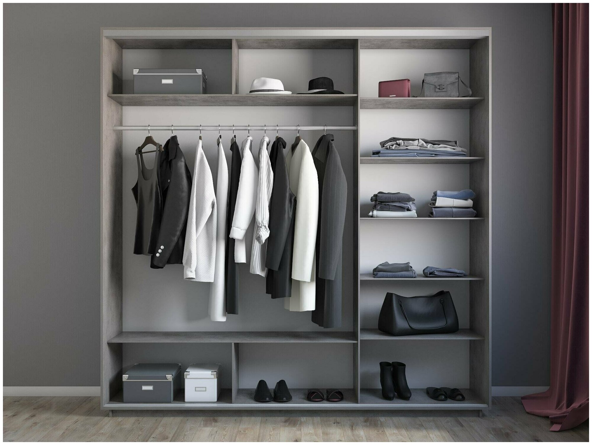 Шкаф-купе Экспресс, цвет Бетон, 240Х240Х60 (ВхШхГ), три двери ДСП/Зеркало/ДСП