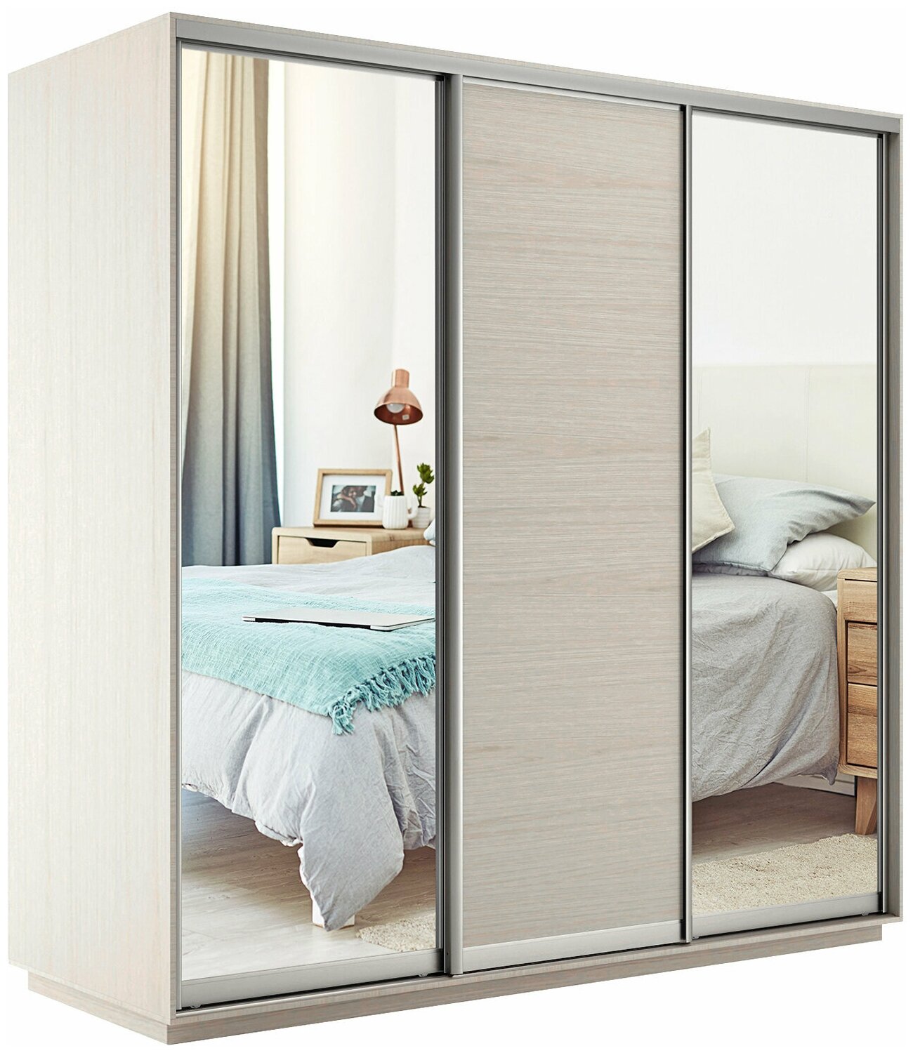Шкаф-купе Экспресс Медиум 3-x дв 240 x 240 x 45 Зеркало Ясень шимо светлый