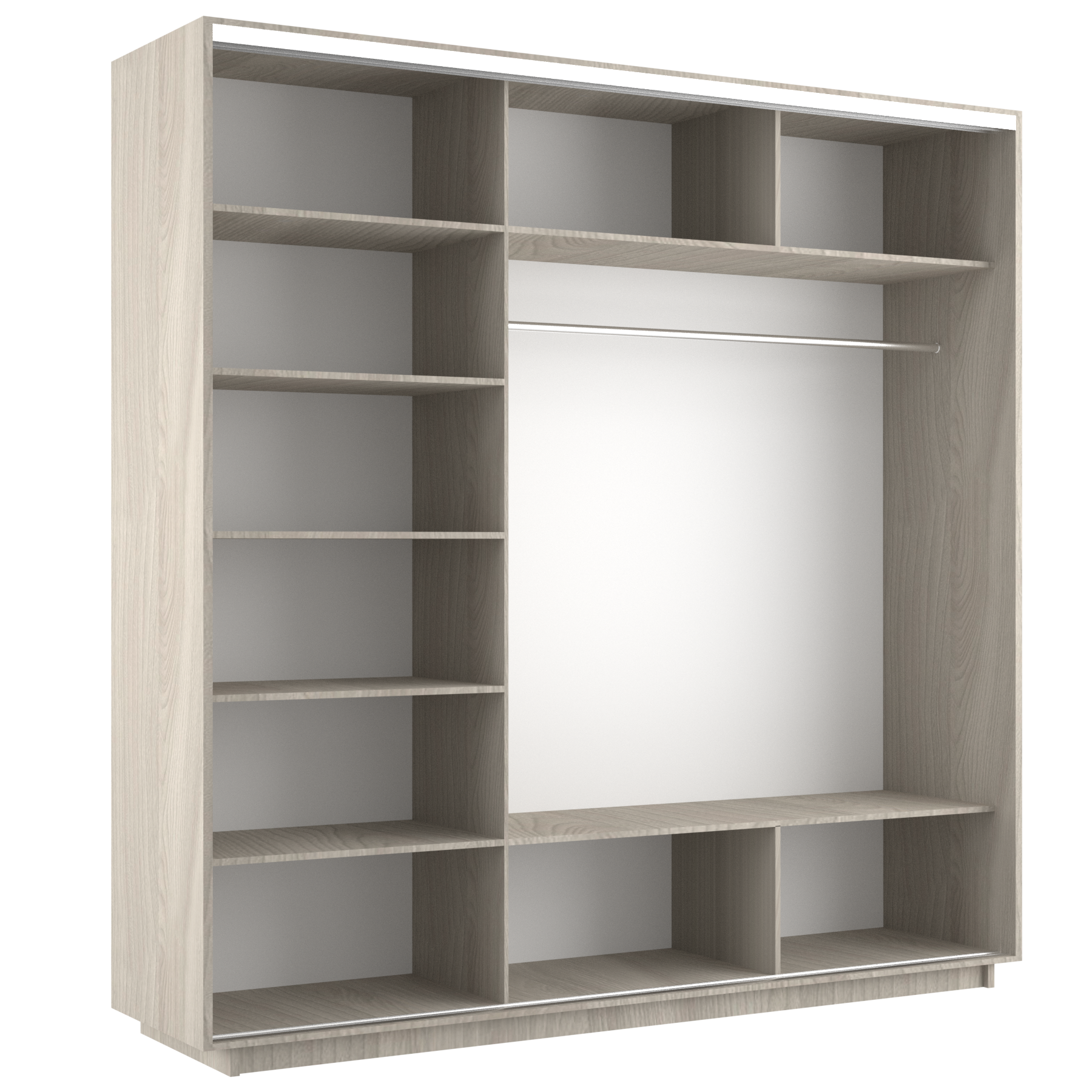 Шкаф-купе Экспресс 3-х дверный, Зеркала, 210х60х220, Мебельная компания Е1, Ясень Шимо светлый