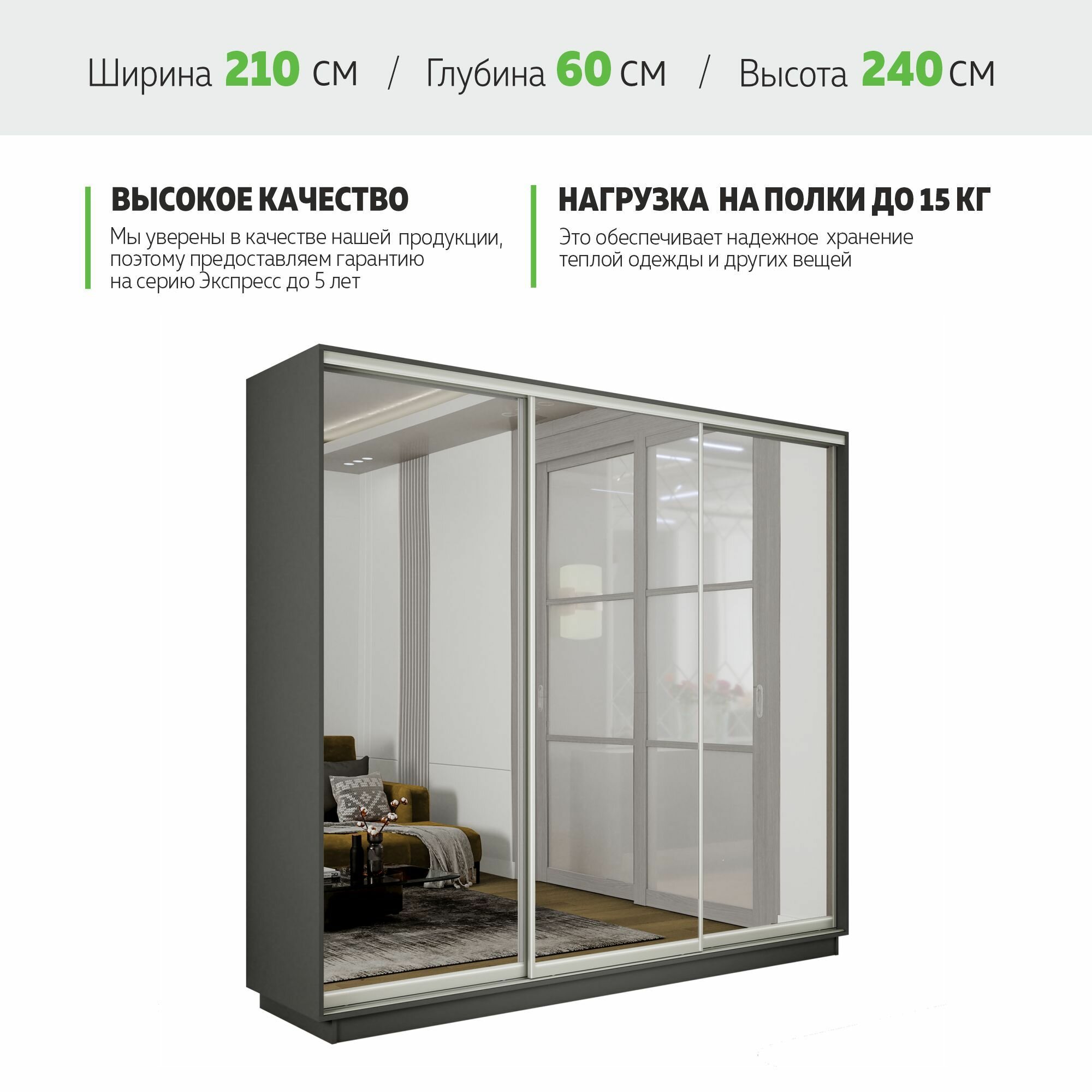 Купить Шкаф-купе 2,1 Экспресс 3-х дверный 210х240х60 Зеркало Серый Диамант