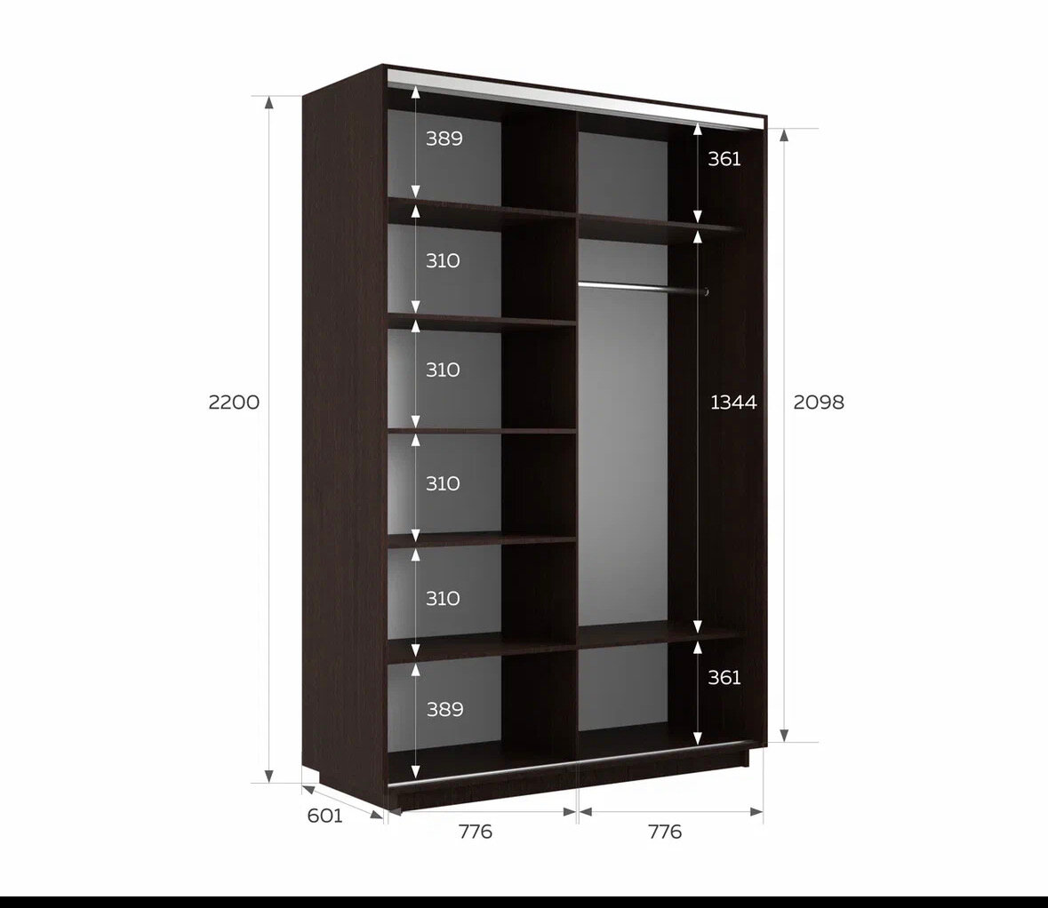 Шкаф-купе Экспресс 3-x дв 210 x 220 x 60 ЛДСП Зеркало Венге