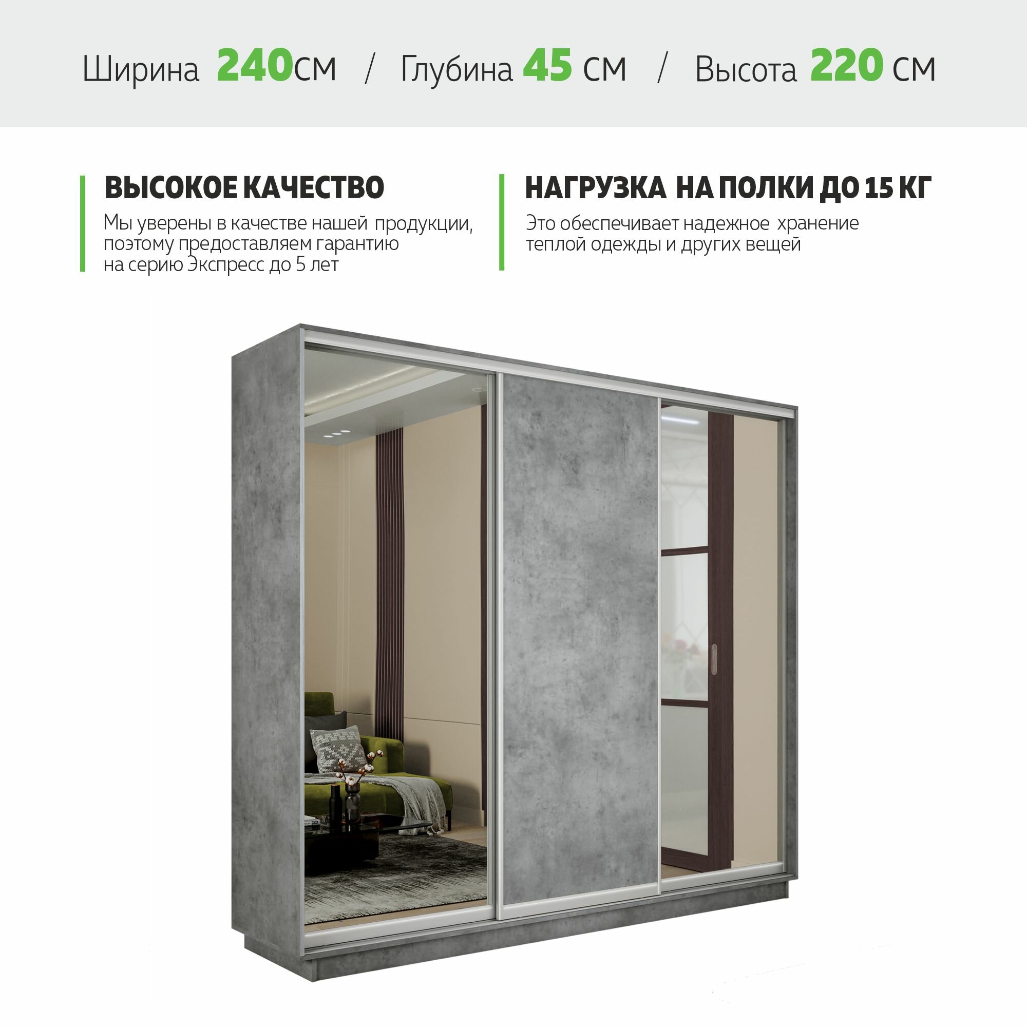 Шкаф-купе 2,4 Экспресс 3-х дверный 240х240х60 Зеркало Бетон