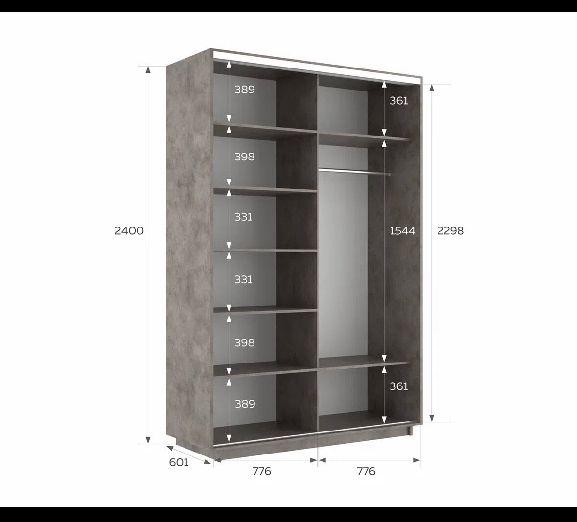СохранитьШкаф-купе Бетон 240Х160Х60, 2 двери, одно зеркало интересное:
