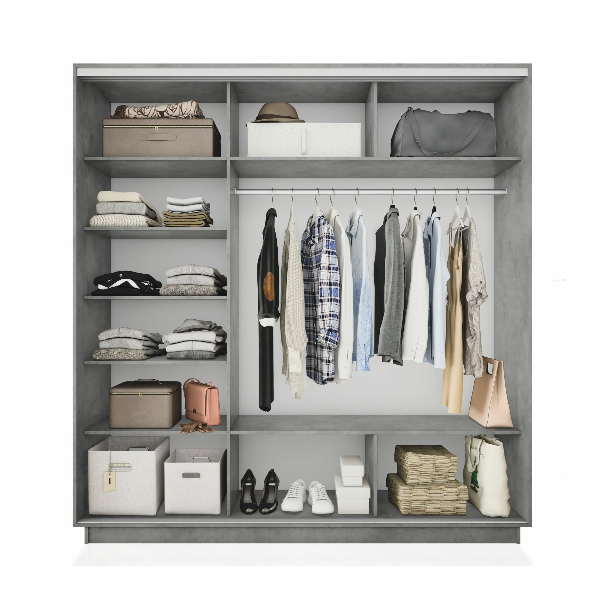 Шкаф-купе Экспресс, цвет Бетон, 240Х240Х60 (ВхШхГ), три двери ДСП/Зеркало/ДСП