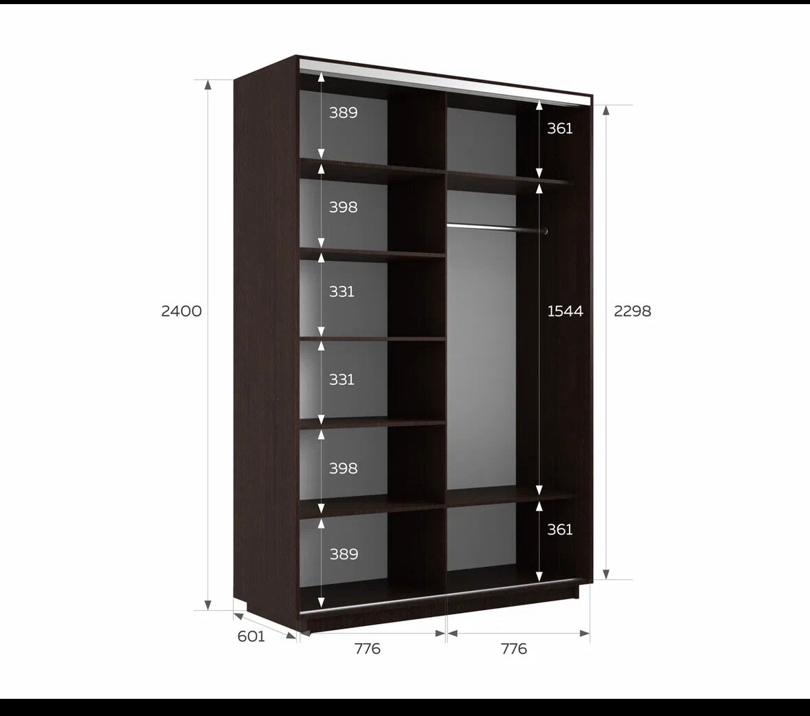 СохранитьШкаф-купе Венге 240Х160Х60, 2 двери, одно зеркало интересное: