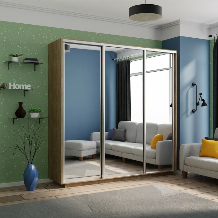 Купить Шкаф-купе 2,4 Экспресс 3-х дверный 240х240х45 Зеркало/Зеркало/Зеркало сонома