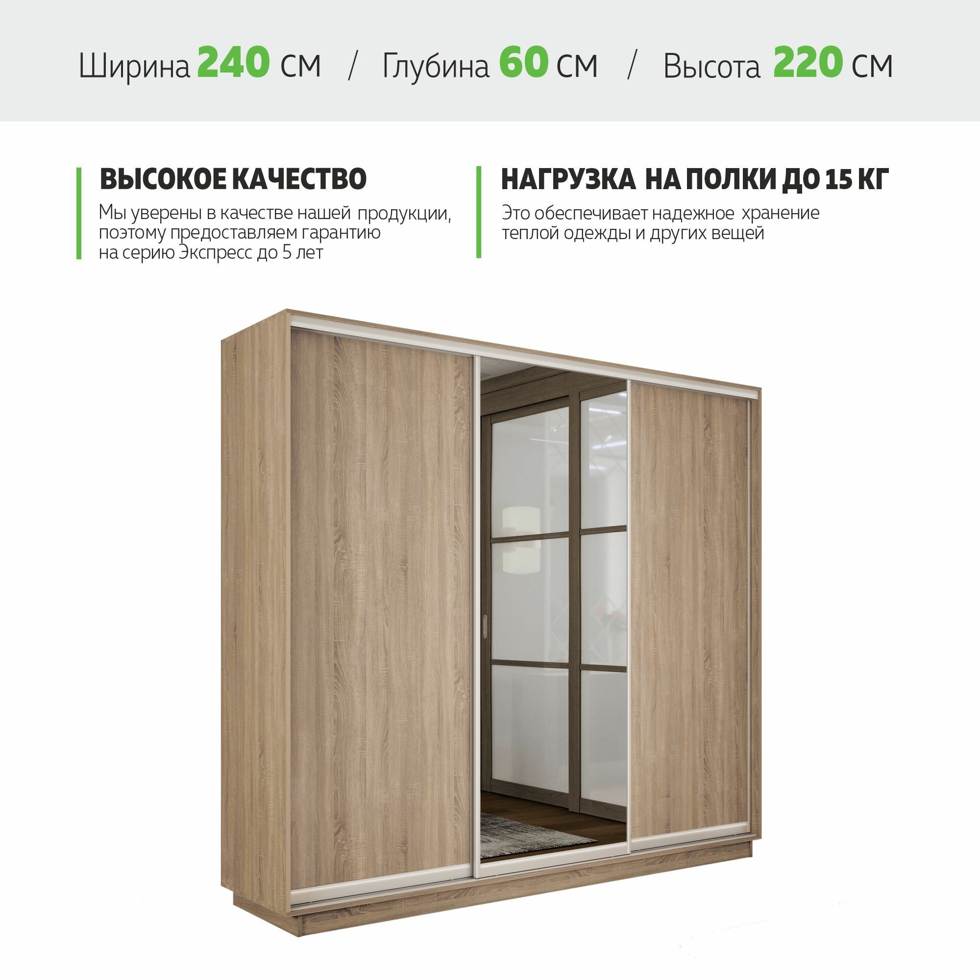 Купить Шкаф-купе Экспресс 3дв. ДСП/Зеркало/ДСП, 240х60х220, Сонома