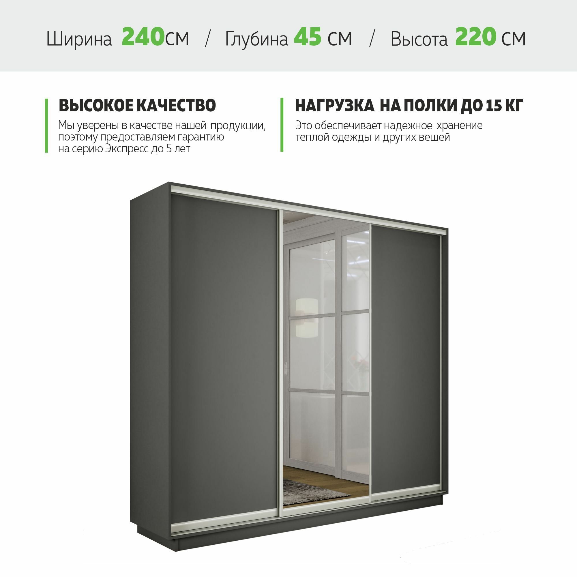 Шкаф-купе 2,4 Экспресс 3-х дверный 240х240х60 Зеркало Серый Диамант