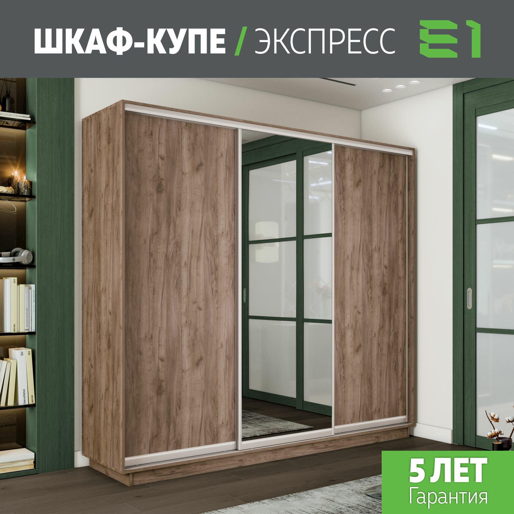 Шкаф-купе Экспресс 3-х дверный, Зеркала, 180х60х220, Мебельная компания Е1, Сонома