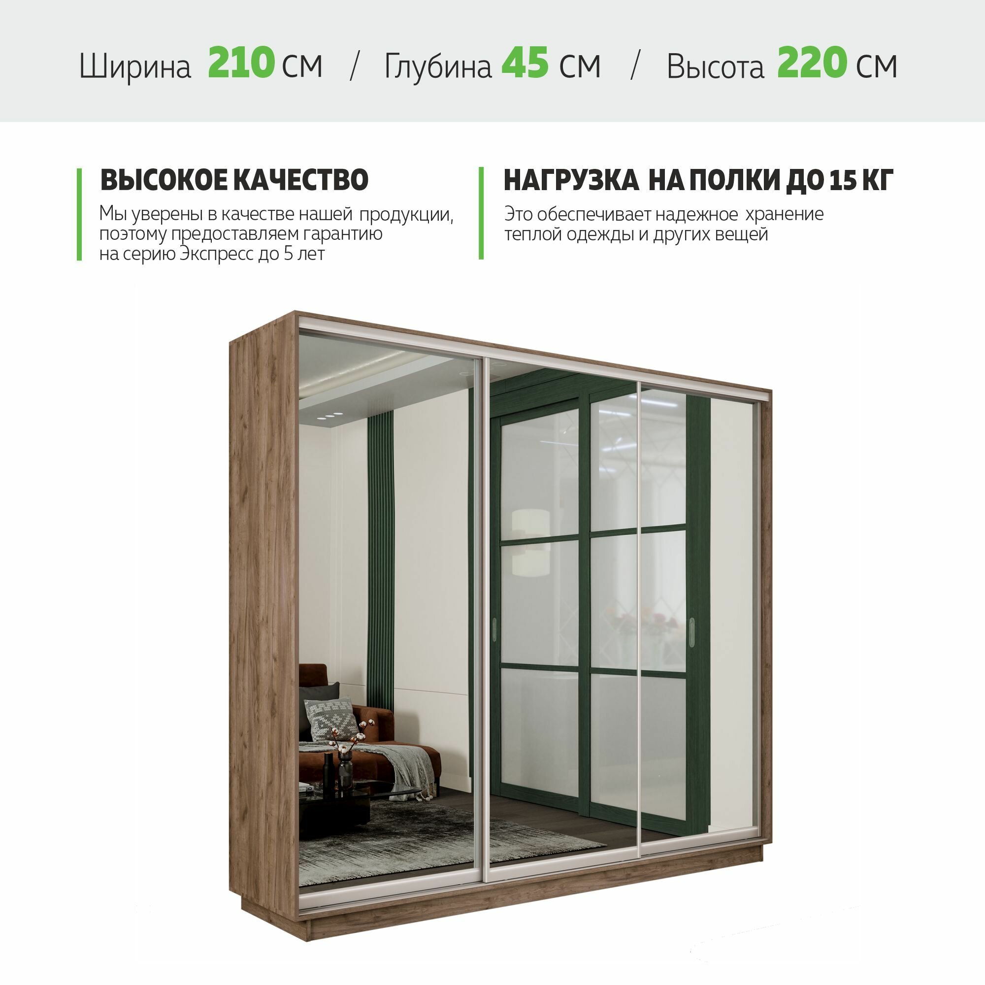 СохранитьШкаф-купе Экспресс 3-х дверный, Зеркала, 210х45х220, Мебельная компания Е1, Крафт табачный интересное: